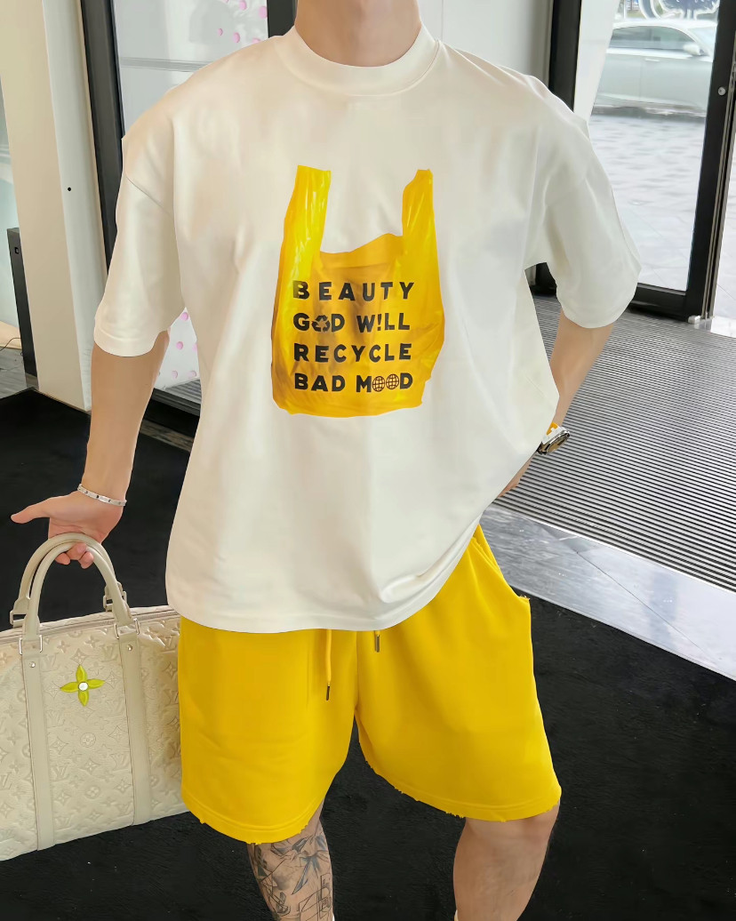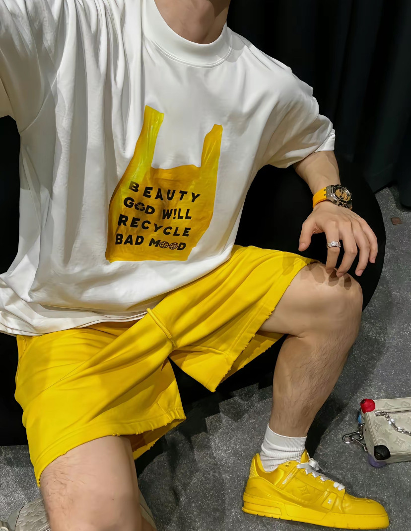 【陈发财】FA CAI订制款情侣潮牌塑料袋印花宽松百搭小领口短袖T