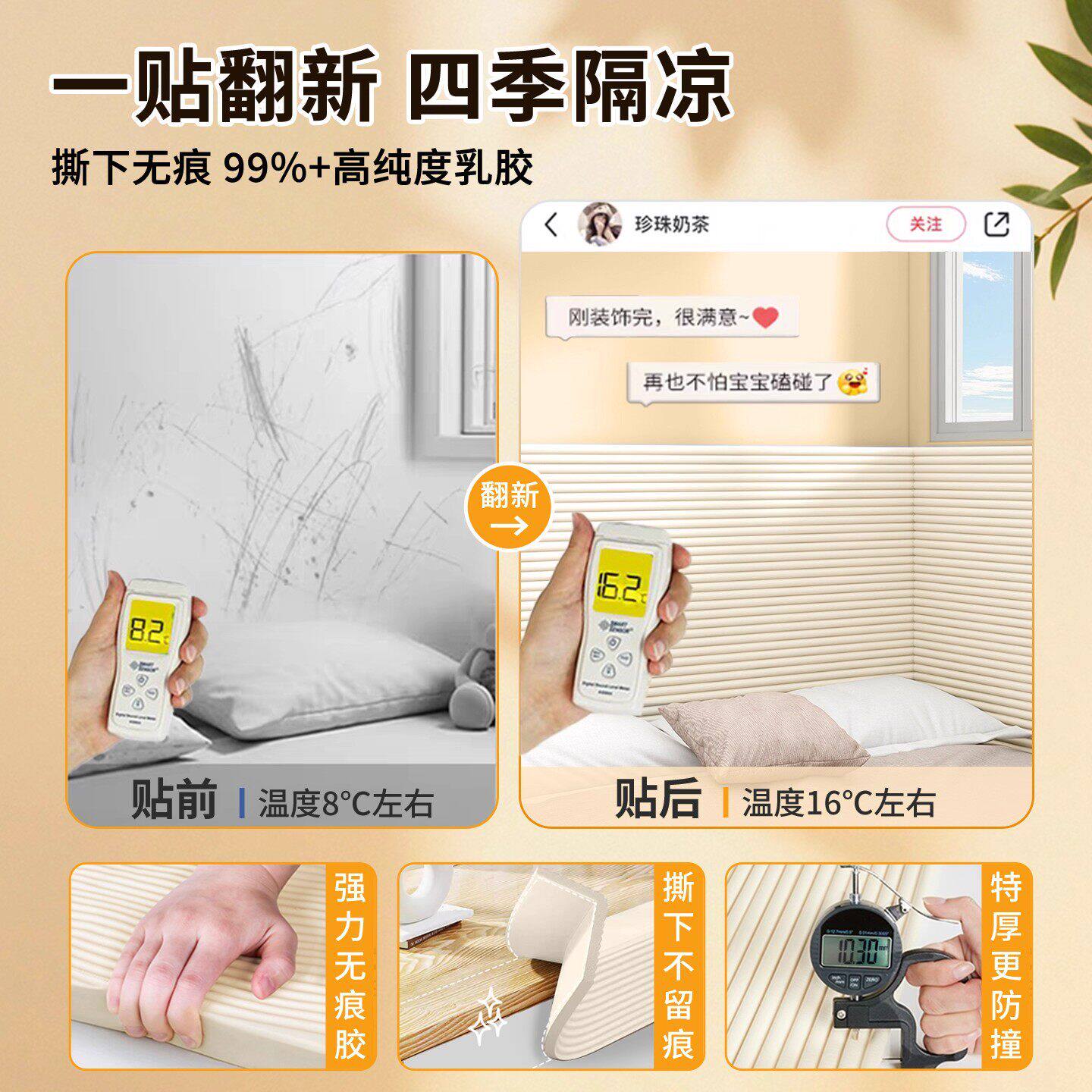 儿童防撞泡沫海绵墙贴榻榻米垫床边墙围婴儿防磕碰床头窗台软包贴