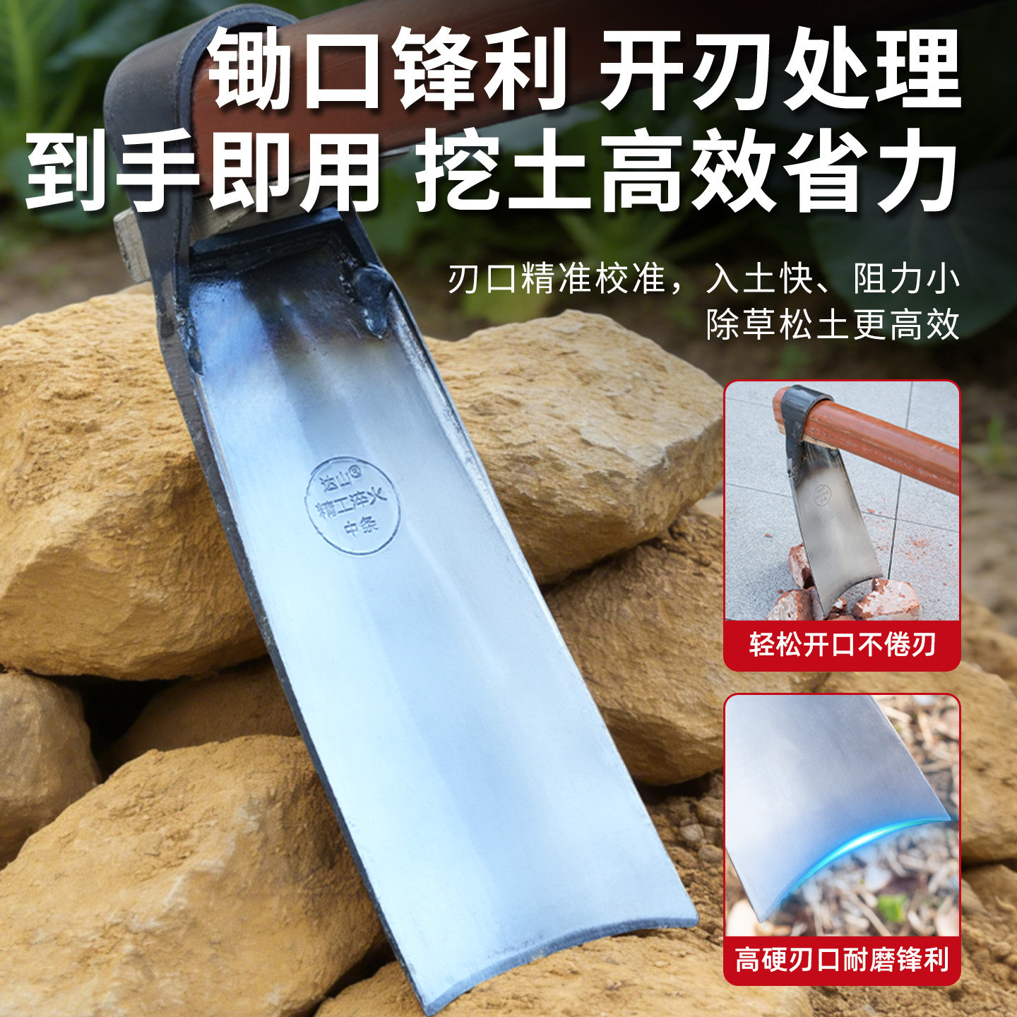 达山弹簧钢农用锄头加厚户外家用种菜锄地刨老式镢头挖冬笋锻打
