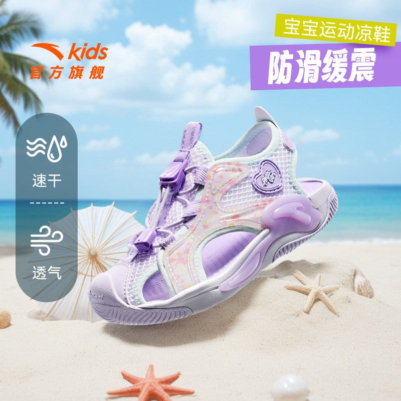 安踏儿童小童女宝包头运动凉鞋2025夏季宝宝女童鞋户外溯溪沙滩鞋