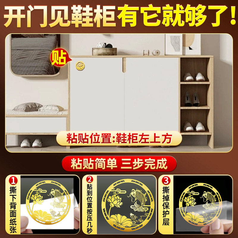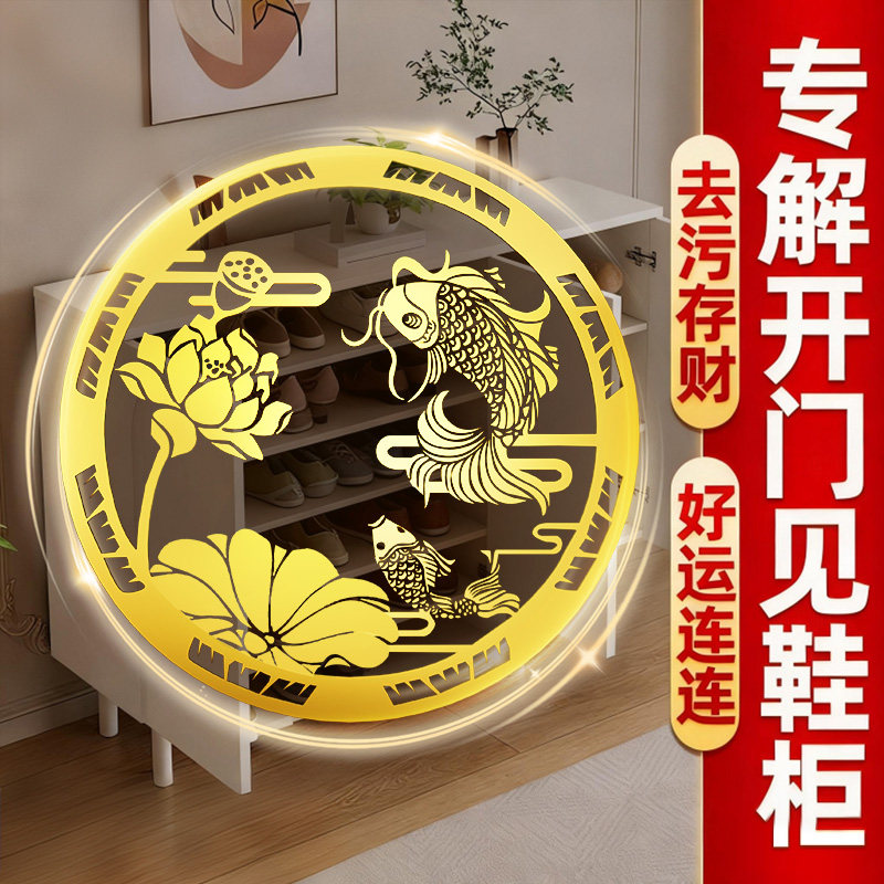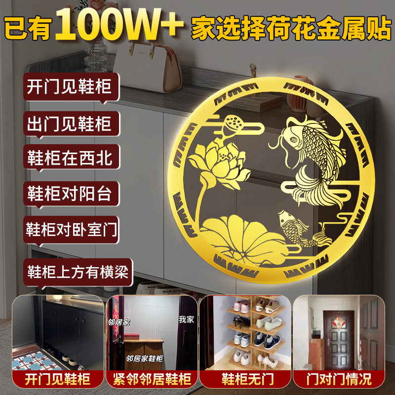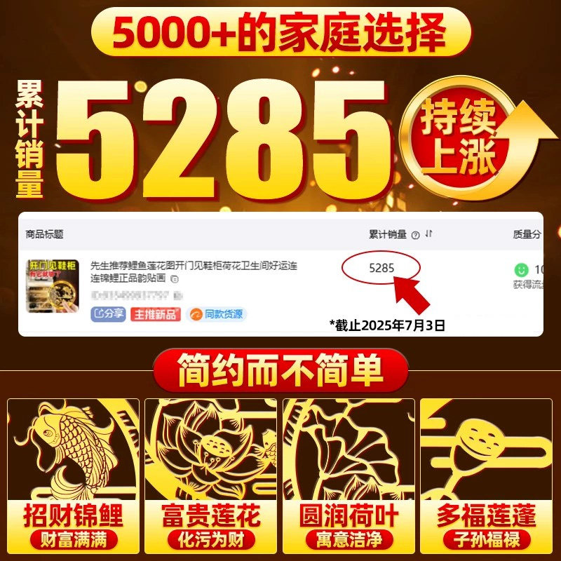 荷花锦鲤鱼净秽图卫生间莲花贴纸好运连连厕所开门见鞋柜金属装饰