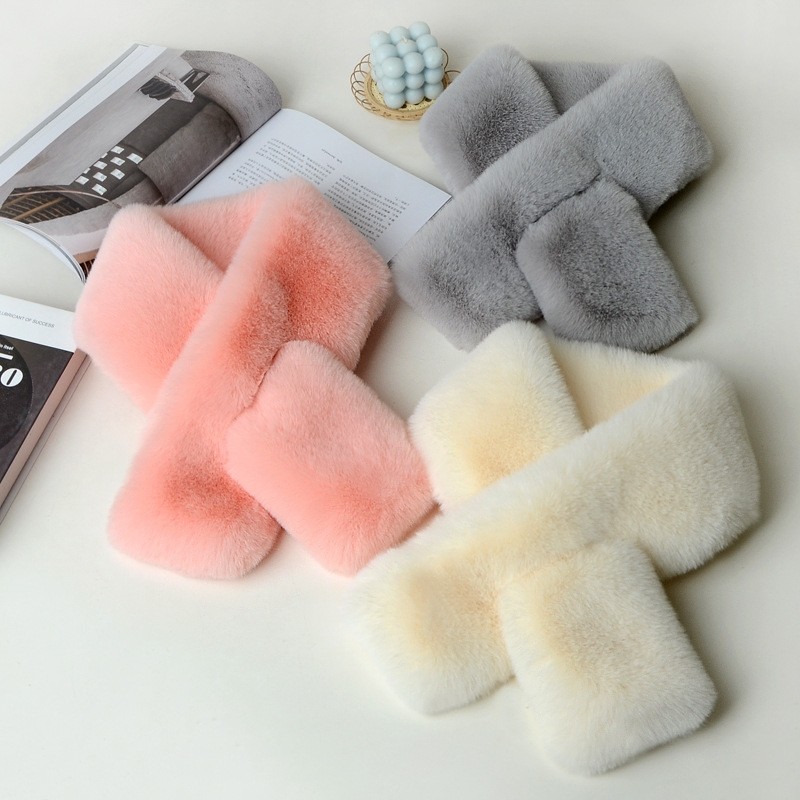 围脖毛绒绒围巾加厚保暖毛领仿獭兔女士2024冬季兔毛白色灰色兔绒