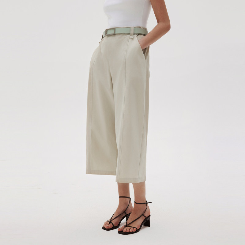 LESS夏季棉质裤子女高腰直筒宽松七分休闲裤2N6E24120