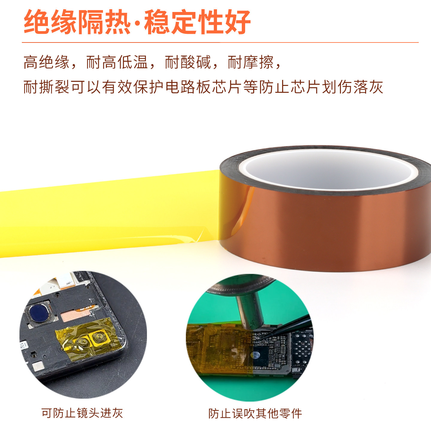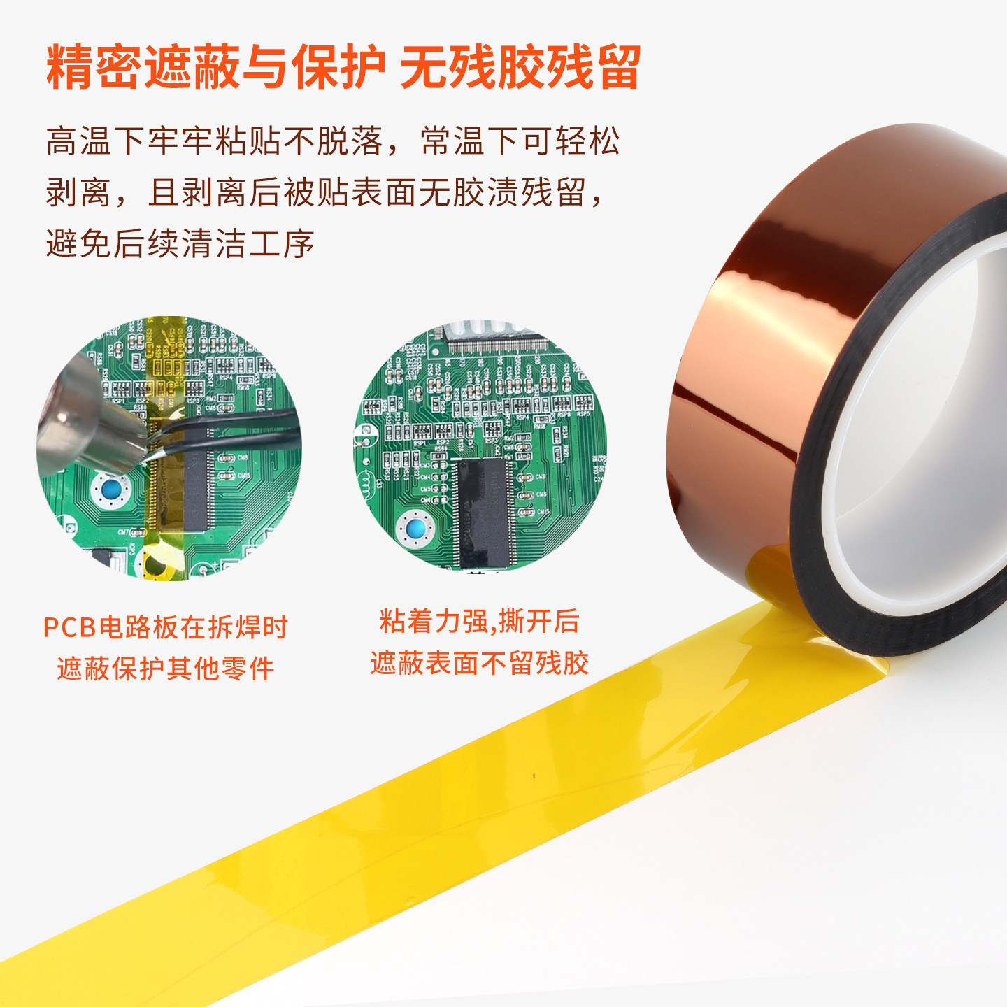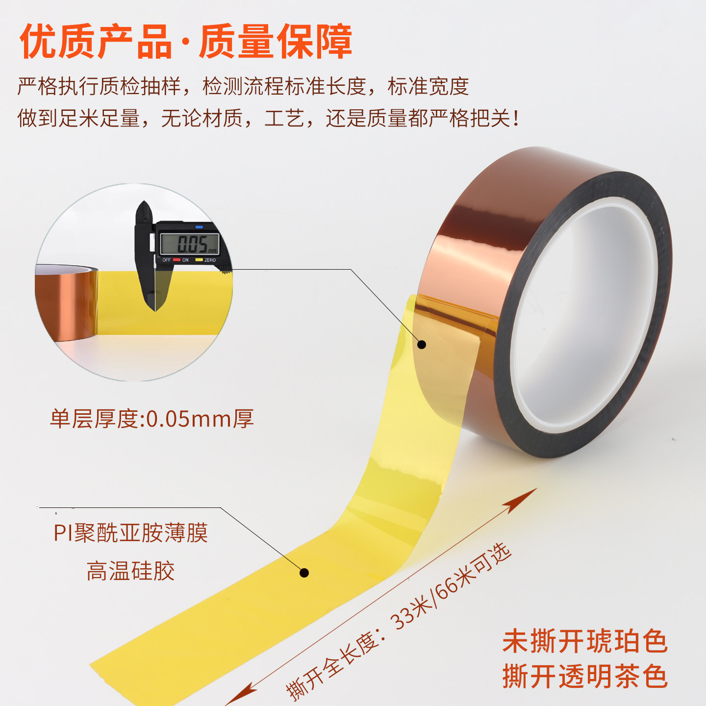 齐加腾PI金手指耐高温胶带聚酰亚胺胶带背胶绝缘贴片PCB电路板SMT回焊保护膜锂电池包扎隔热3D热转印机0.06
