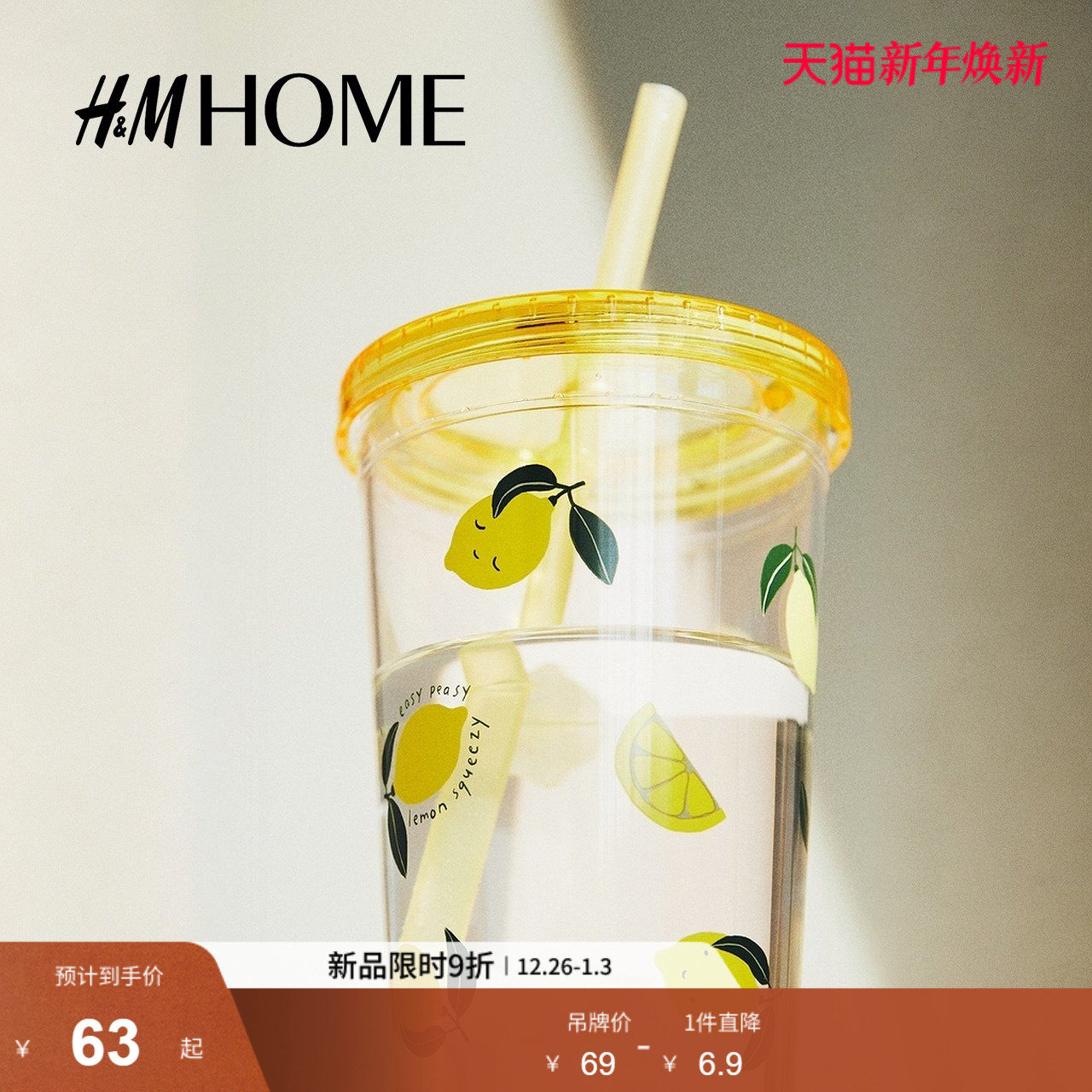 HM HOME餐饮具马克杯2025冬季新款吸管透明塑料印花马克杯1206087