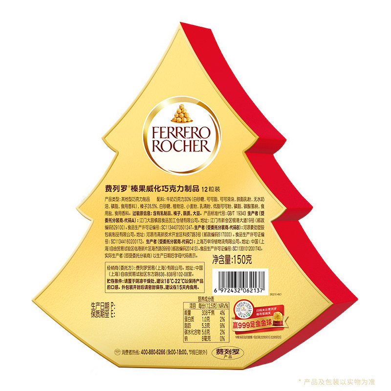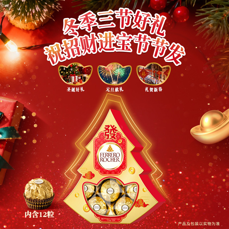 费列罗官方旗舰店榛果威化巧克力制品12粒"发财树"礼盒伴手礼物