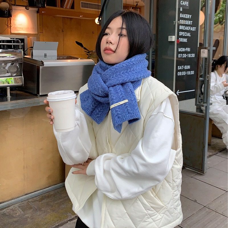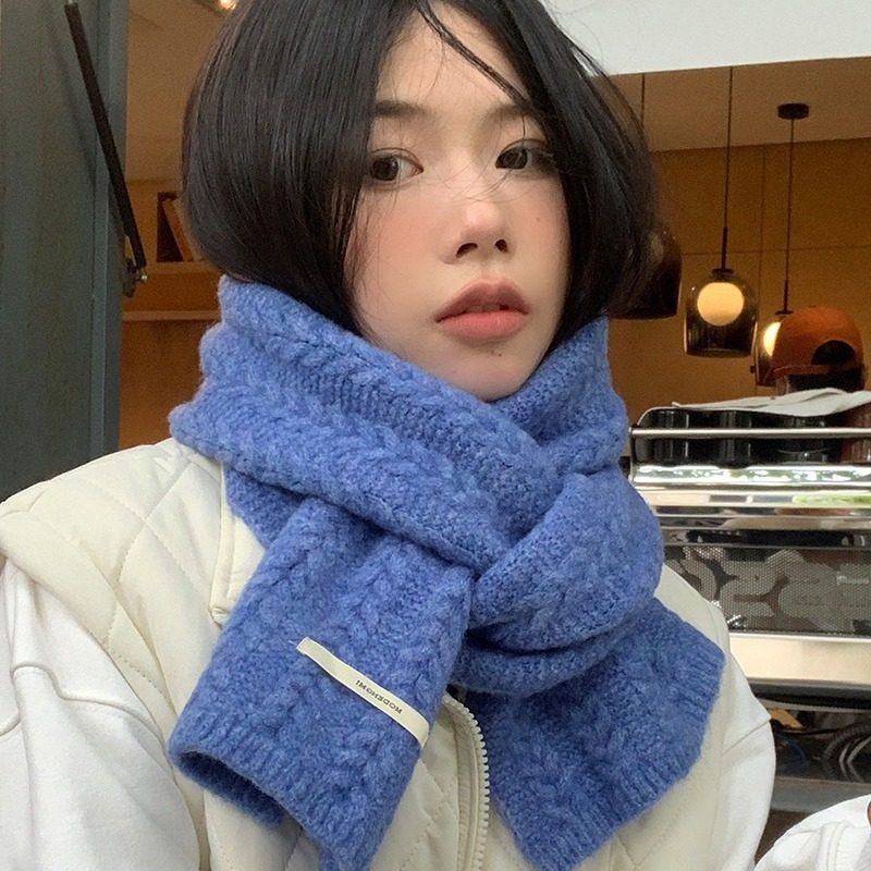 牛油果绿针织毛线围巾女秋冬季保暖加厚学生围脖绿色红色紫色蓝色