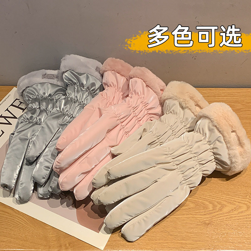 手套秋冬季女保暖学生韩版可爱加绒加厚骑车五指防寒可触屏棉手套
