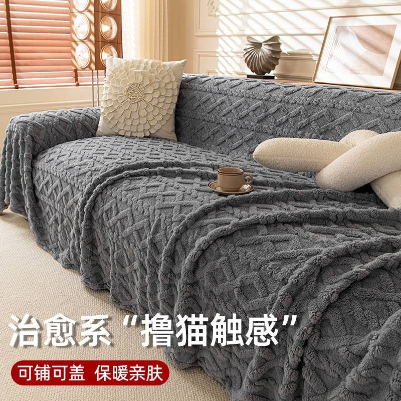 冬季简约新款舒棉绒沙发盖防尘防猫抓沙发套2025一片式奶油贵妃位