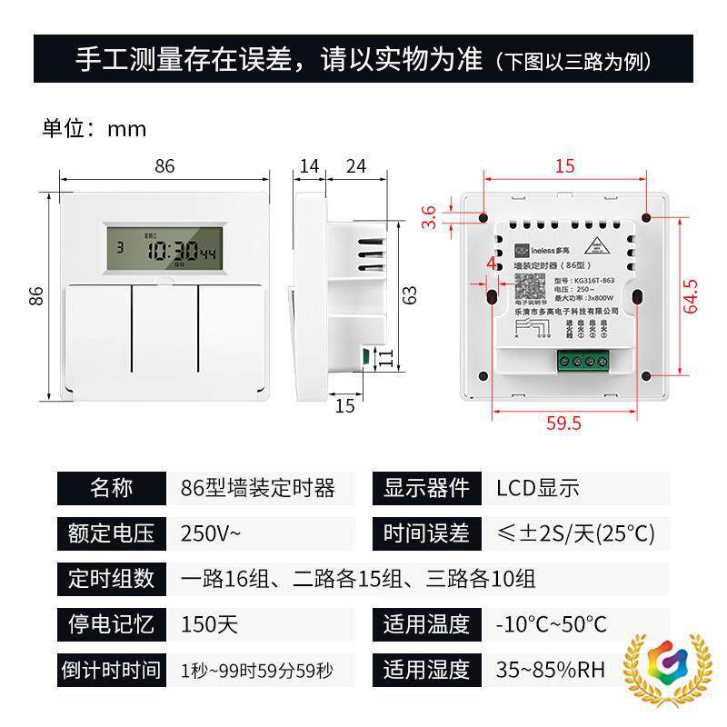 の86型墙装定时器面板式时控智能延时控制开关墙壁照明灯220V单火