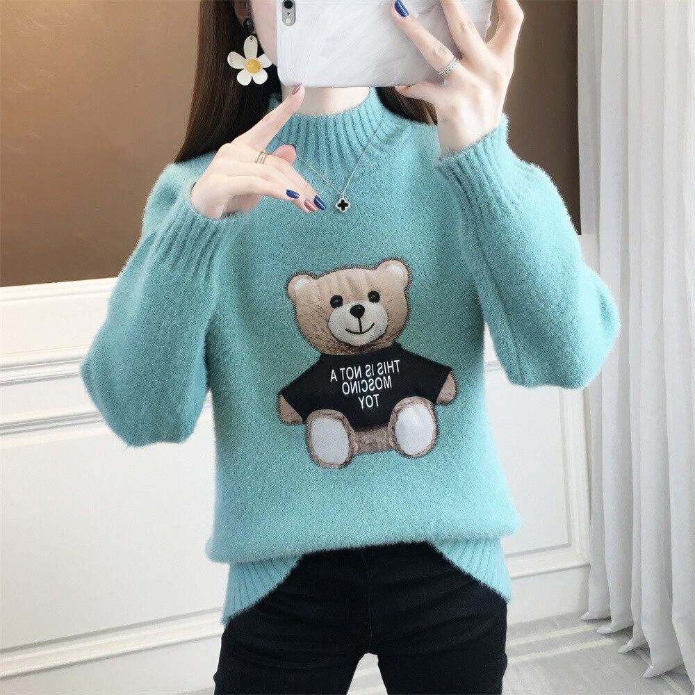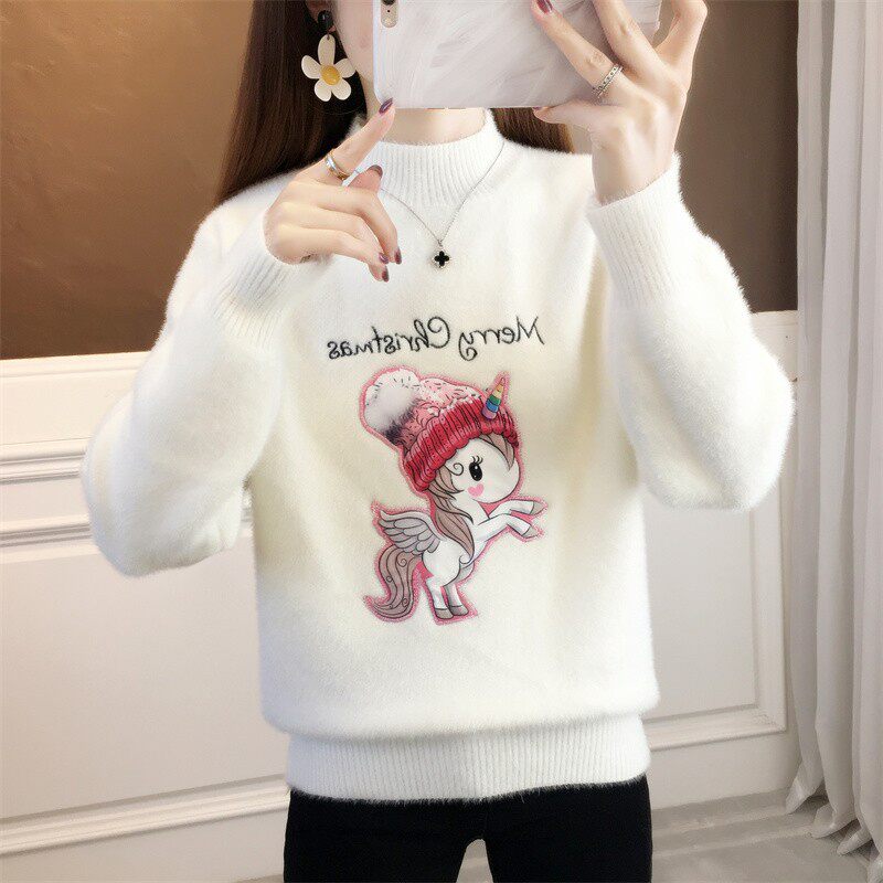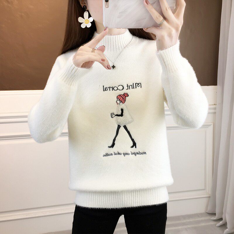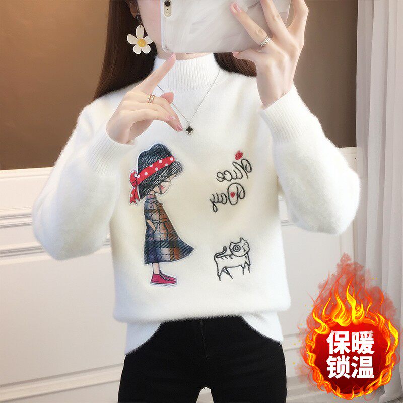 2025时尚水貂绒加绒加厚半高领学生初中高中女大童百搭秋冬套头短