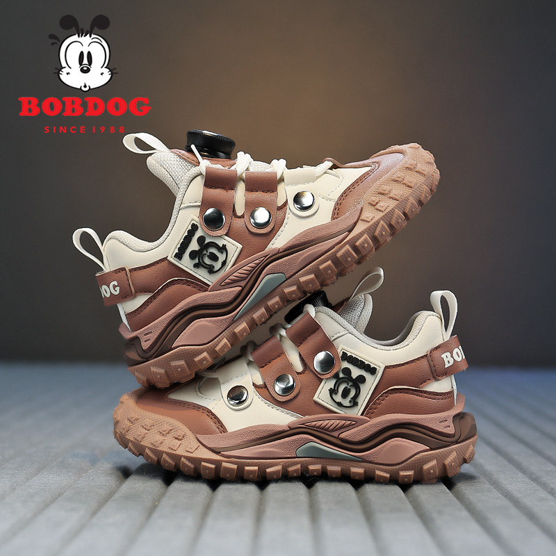 巴布豆男童鞋子防水皮面2025春秋新款轻便软底女童运动鞋时尚防滑