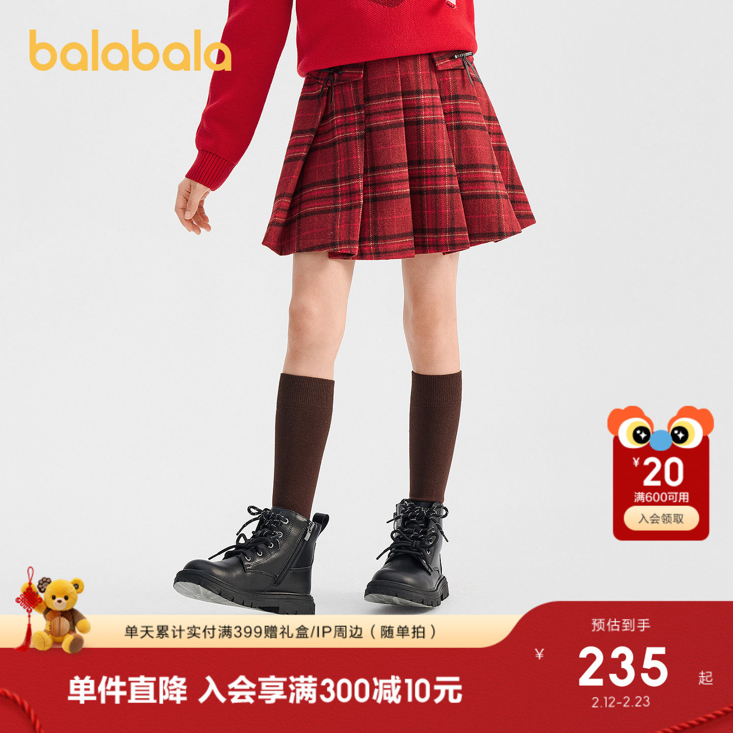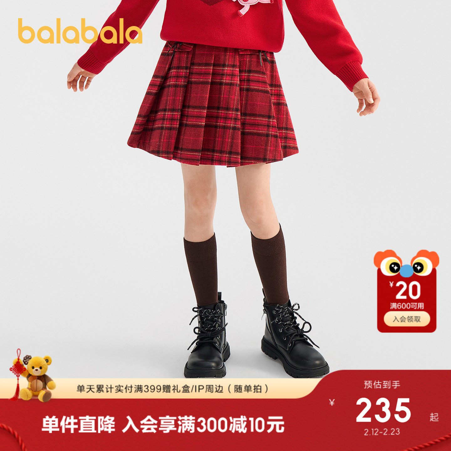【商场同款】巴拉巴拉童装女童新年短裙2026春装新款百红色拜年服