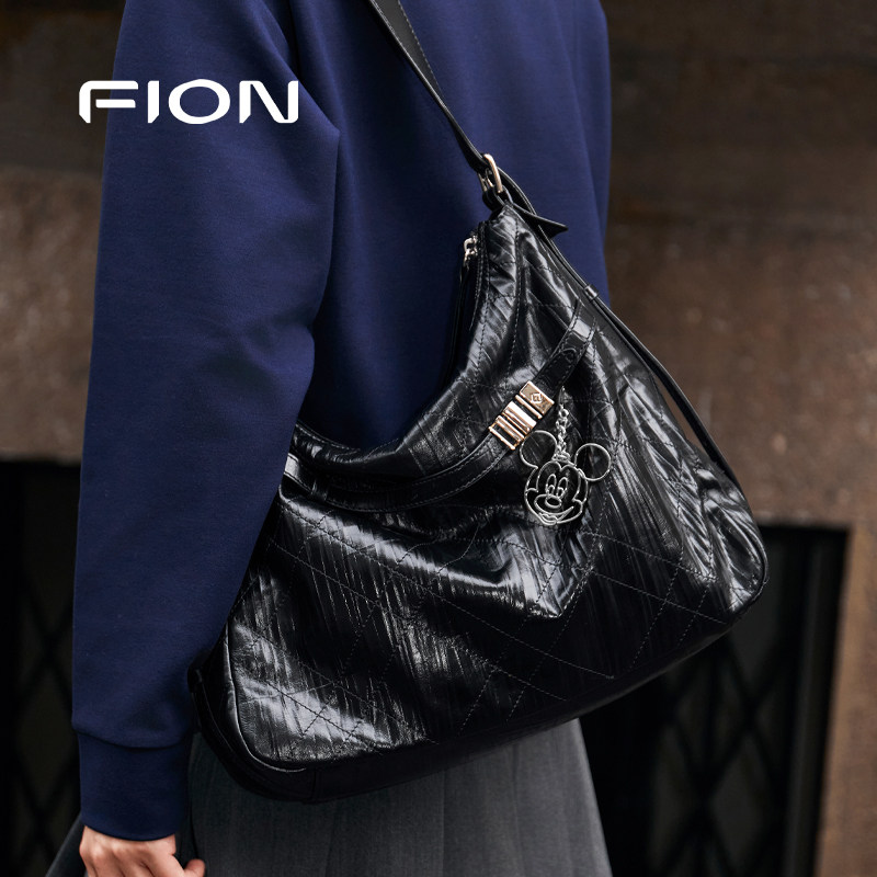 Fion/菲安妮迪士尼米奇合作音符托特包真皮大容量女通勤斜挎包包