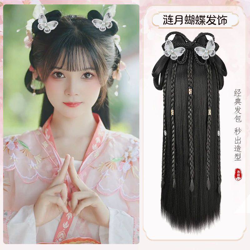 儿童汉服假发蝴蝶结发髻造型古装假发包女童汉服假发头饰假发古风