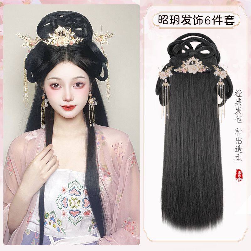 古风汉服假发髻盘发一体式发包古装明制唐风懒人造型垫发全套头饰