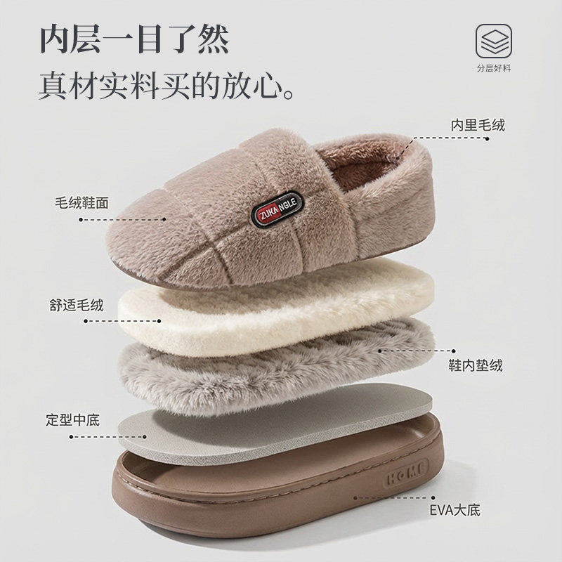 轻臣冬季棉拖鞋女款2026新款秋冬防滑厚底保暖情侣毛绒毛毛拖鞋