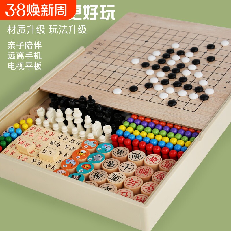 大号跳棋飞行棋五子棋斗兽棋多功能棋子儿童小学生成人玩具多合一