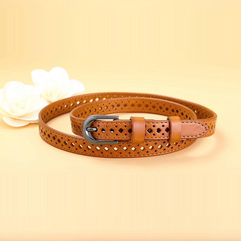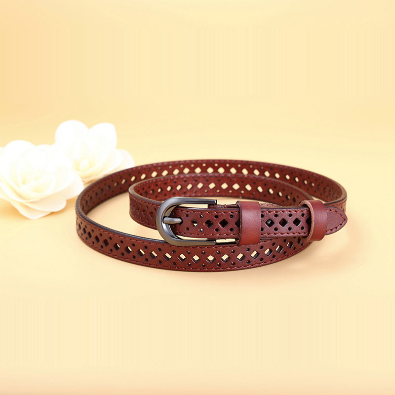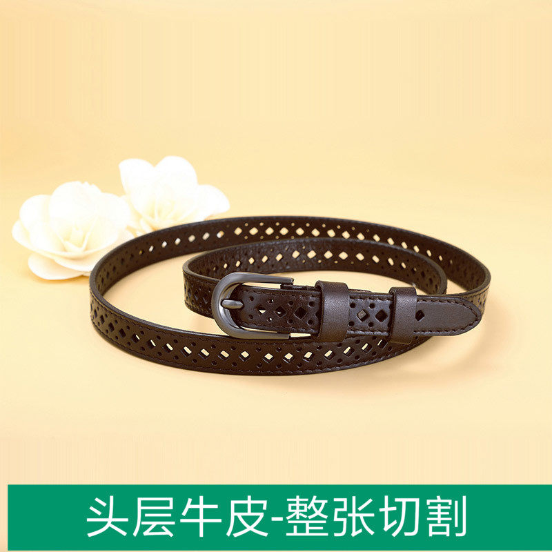 皮带头层牛皮女士细腰带复古镂空简约百搭休闲皮带150#2.0宽皮带