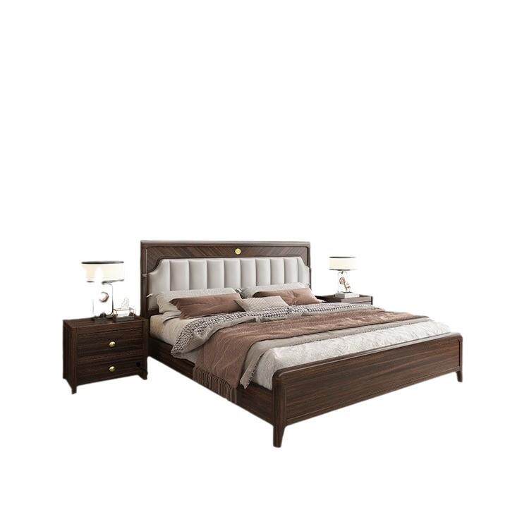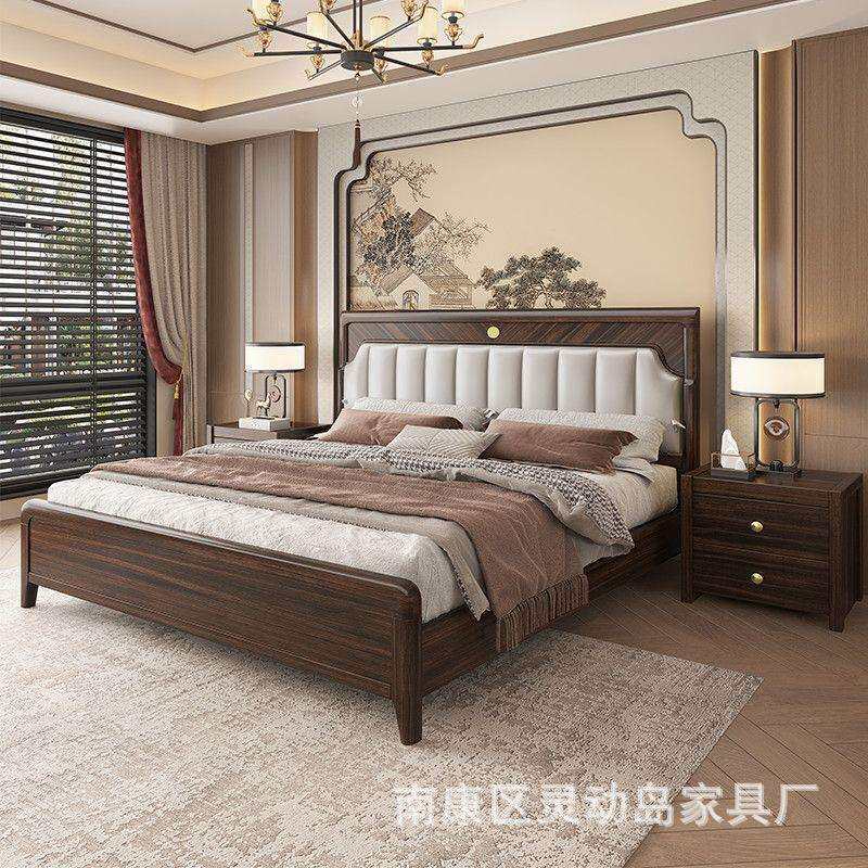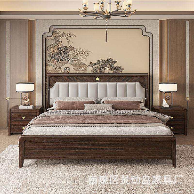 新中式乌金木实木床主卧简约双人床婚床高箱储物软靠床1.8M床