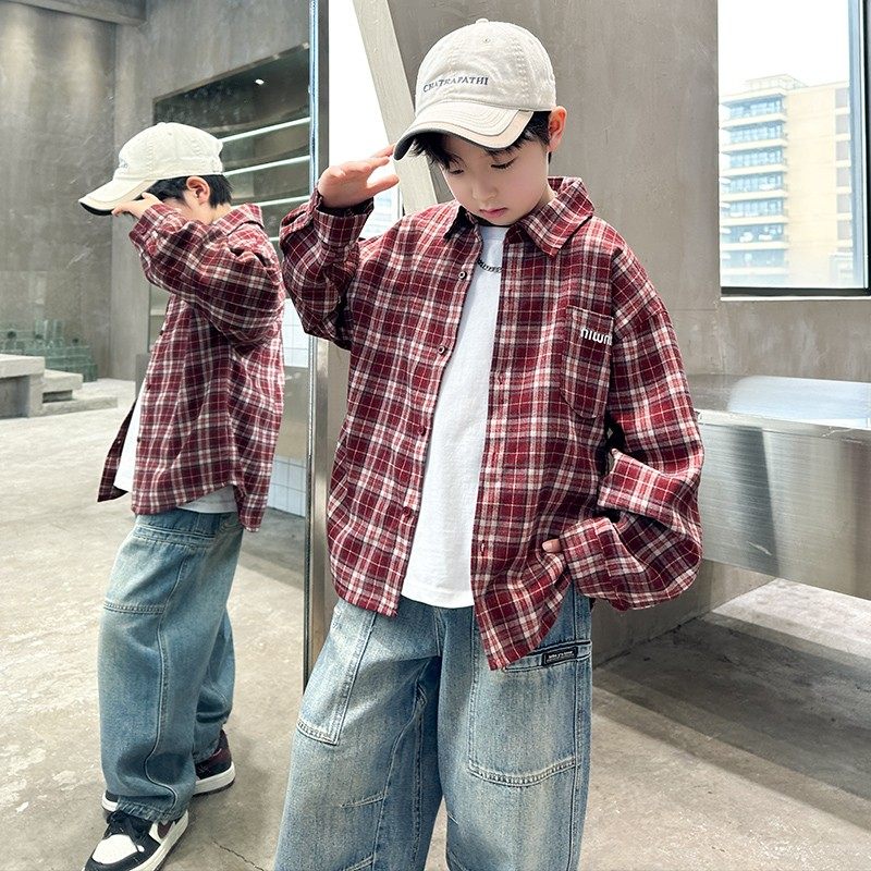 男童衬衫长袖春秋2025新款洋气韩范中大童儿童秋装男孩衬衣上衣潮