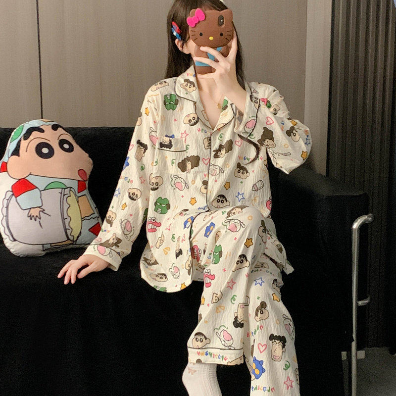 纯棉带胸垫睡衣女2025新款春秋季长袖套装可爱卡通韩版家居服秋冬