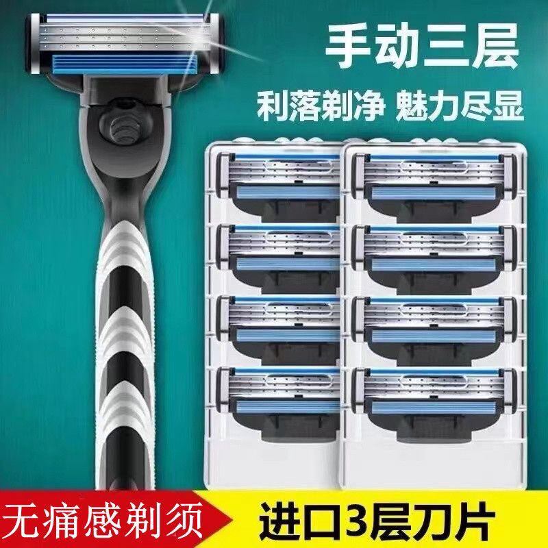 进口6层刀片剃须刀利亚刮胡刀手动刀片六层刀头男刮毛刮头胡子刀