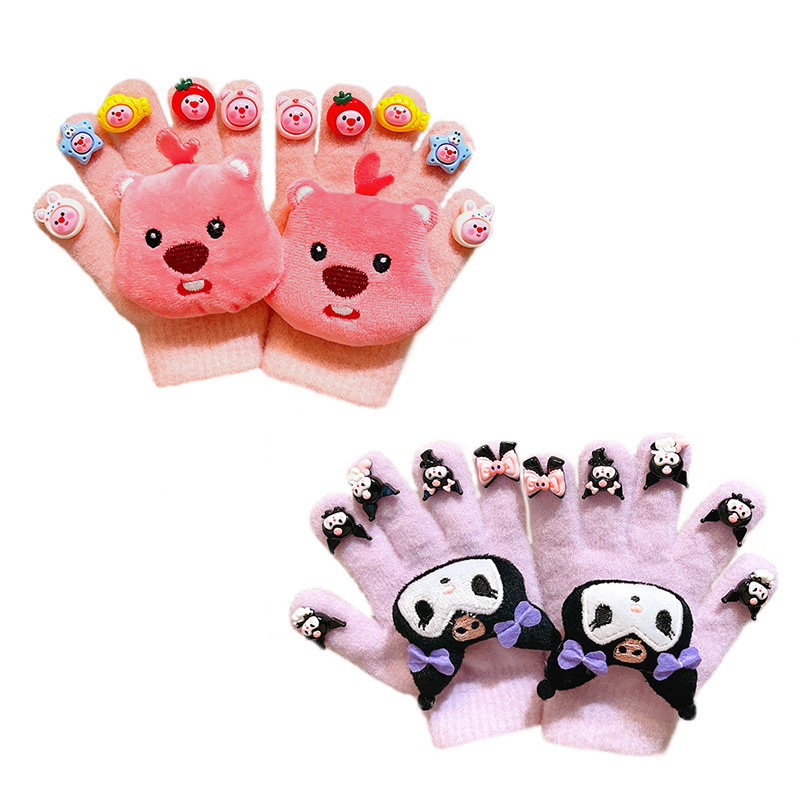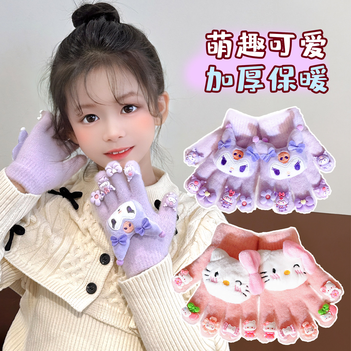 儿童手套冬季女童库洛米五指套冬天女孩加厚绒宝宝保暖防寒分指套