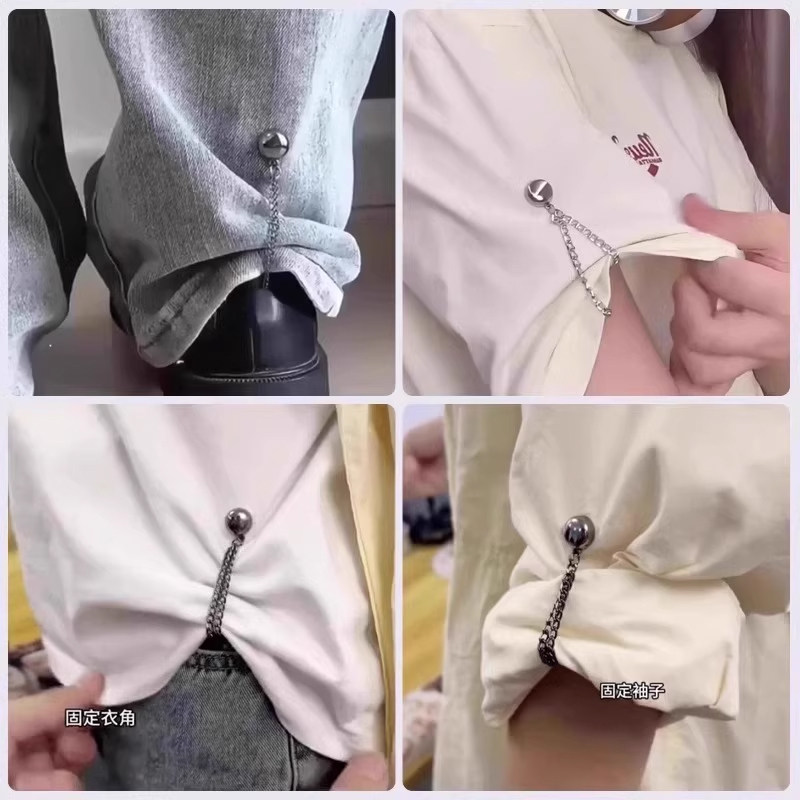 裤脚固定夹挽边裤脚扣袖子衬衫强磁吸附收裤脚神器链条磁吸免缝扣