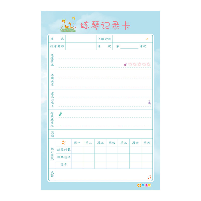 练琴记录卡钢琴初学者练习记录本笔记本子学生学琴课时记录表琴行培训上课课堂打卡表兴趣课外阅读记录本儿童