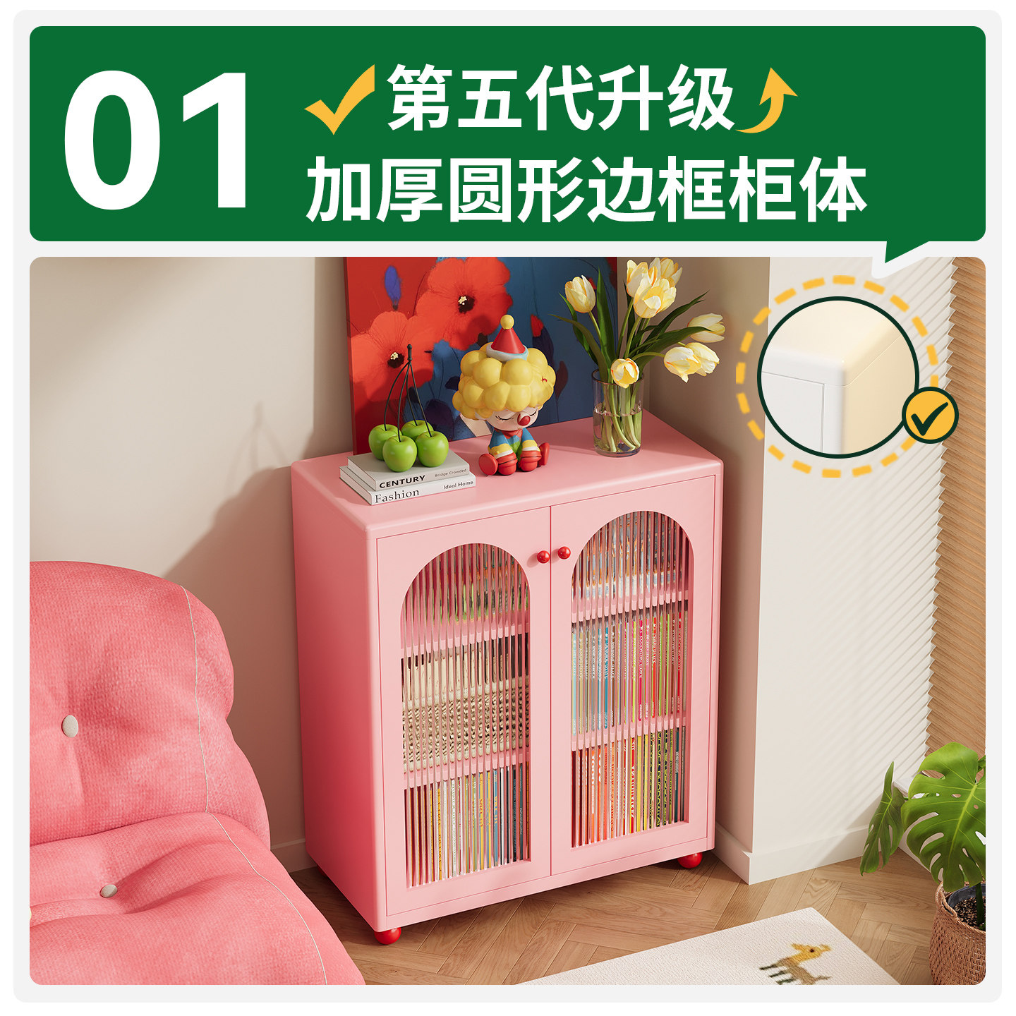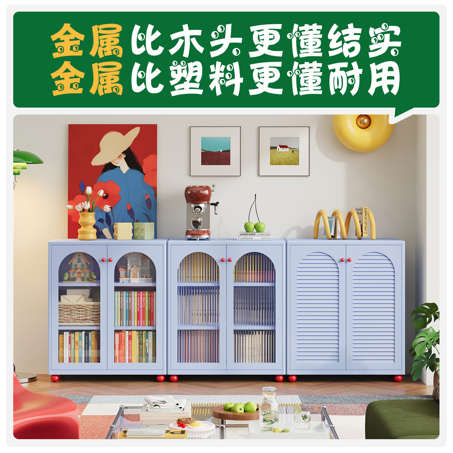 钢制书柜儿童书架落地家用客厅亚克力透明防尘门展示柜储物置物架