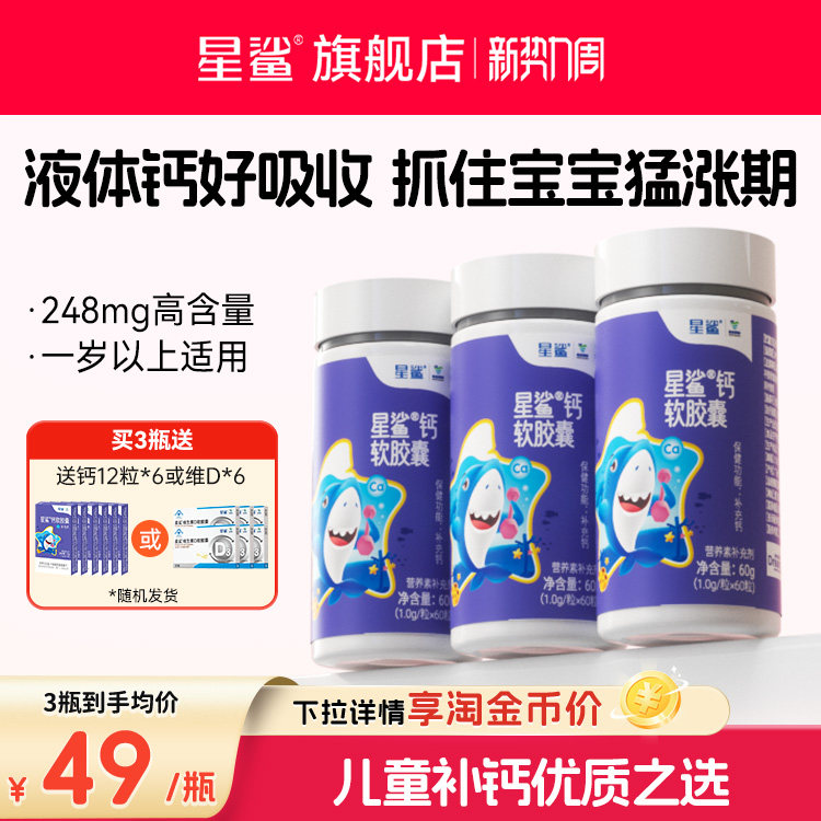 星鲨钙液体钙儿童钙片成长钙补钙胶囊青少年幼儿宝宝一岁以上官方