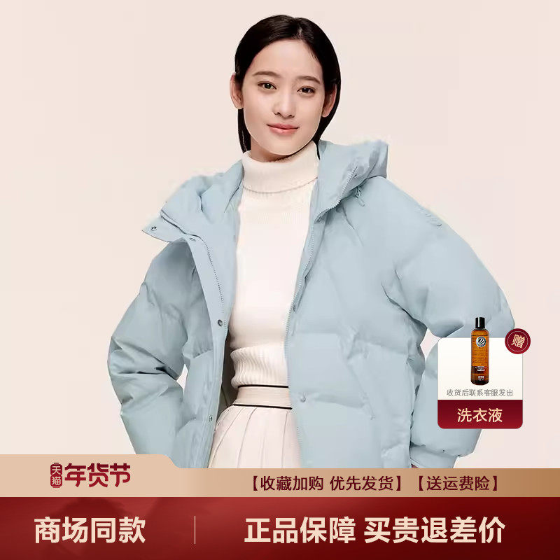 【鞠婧祎同款】鸭鸭2025年冬新款百搭短款女士纯色立领羽绒服外套