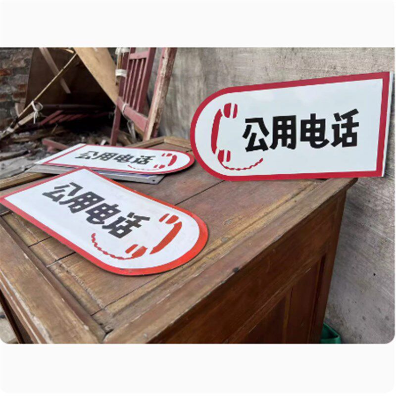 网红餐饮火锅软装饰挂牌做旧公用电话老广告牌铝牌复古门牌号标识