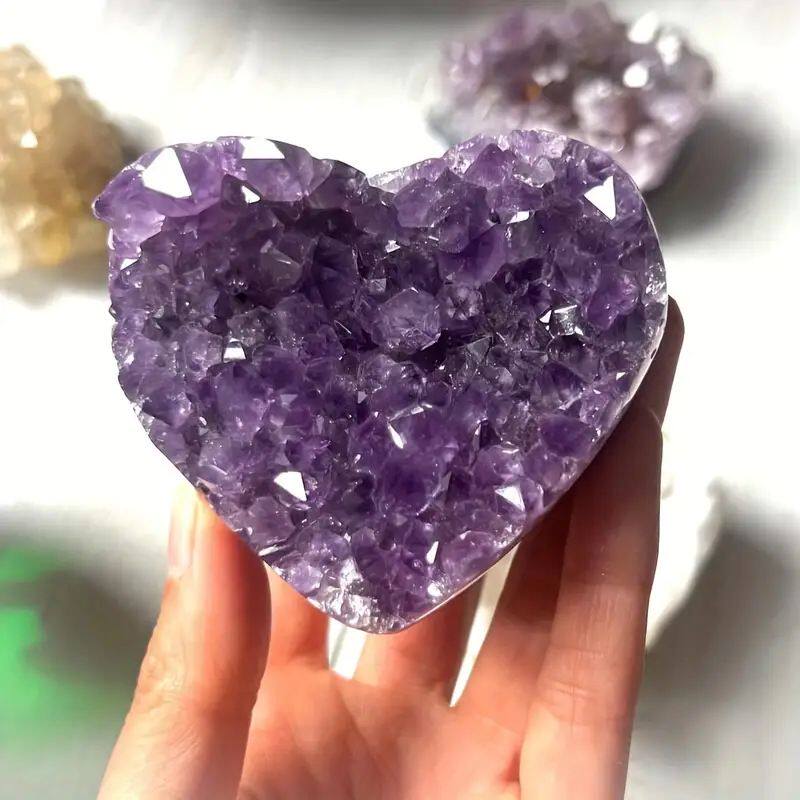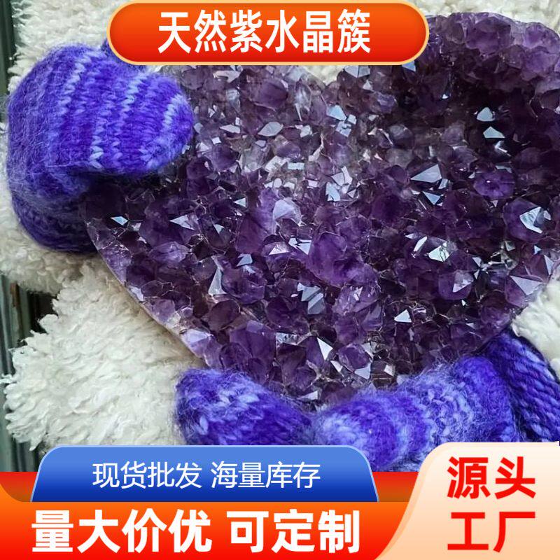 紫水晶簇爱心形标本巴西深紫晶原石家居装饰工艺品摆件能量石天然