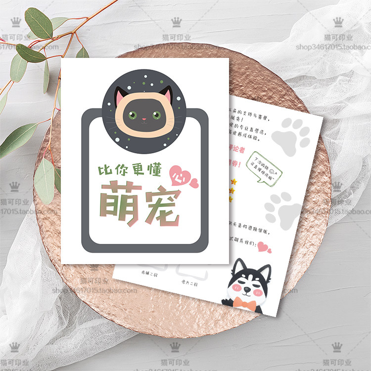 卡通宠物店狗猫咪定制定做制作售后服务感谢小卡片打印刷名片设计