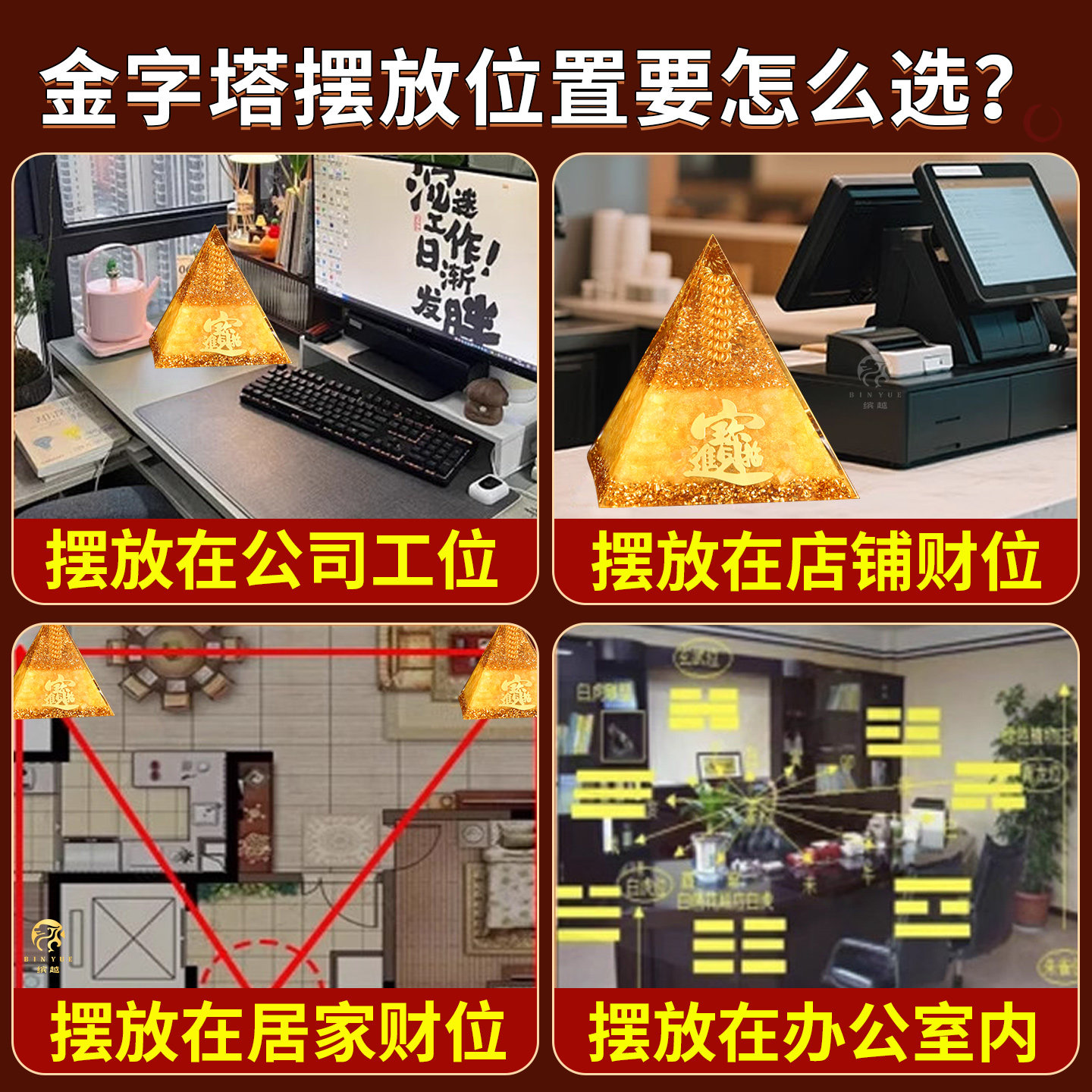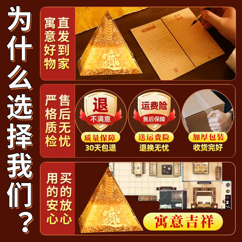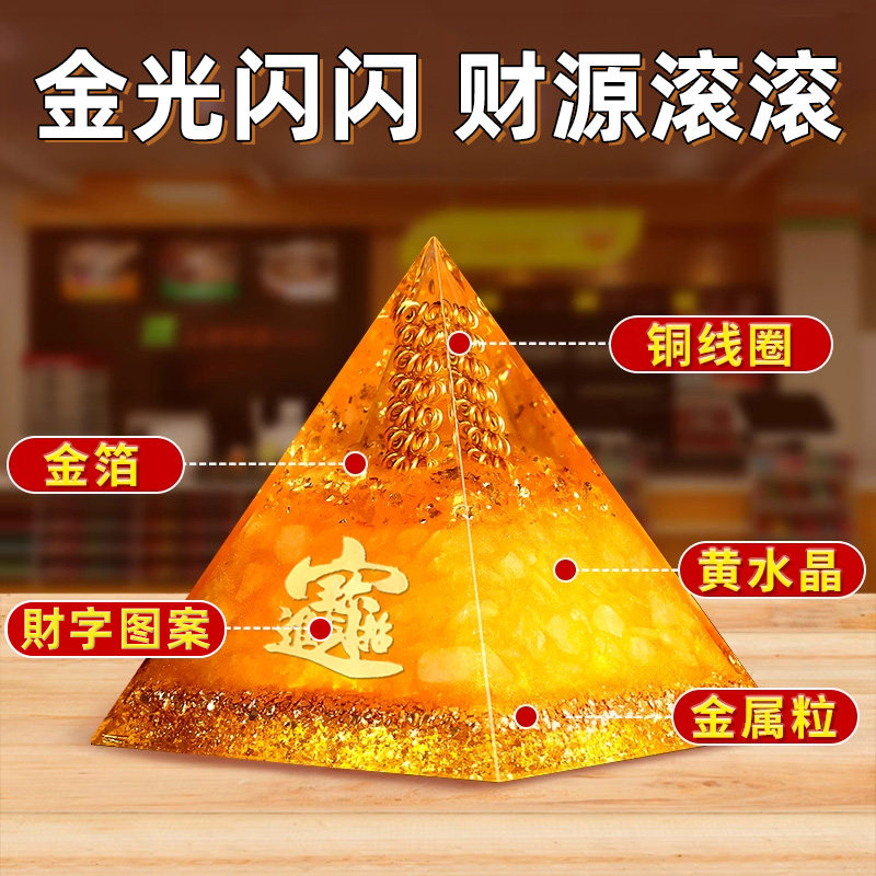 招财进宝黄水晶吸金金字塔办公室办公桌家居店铺八方来财聚财摆件