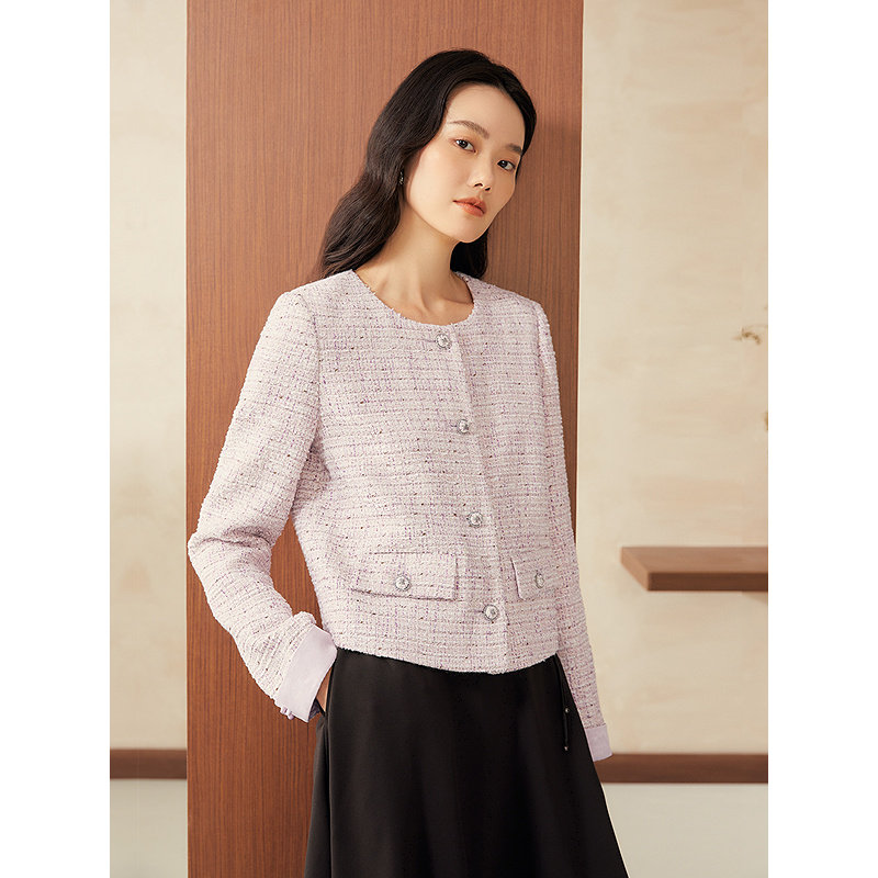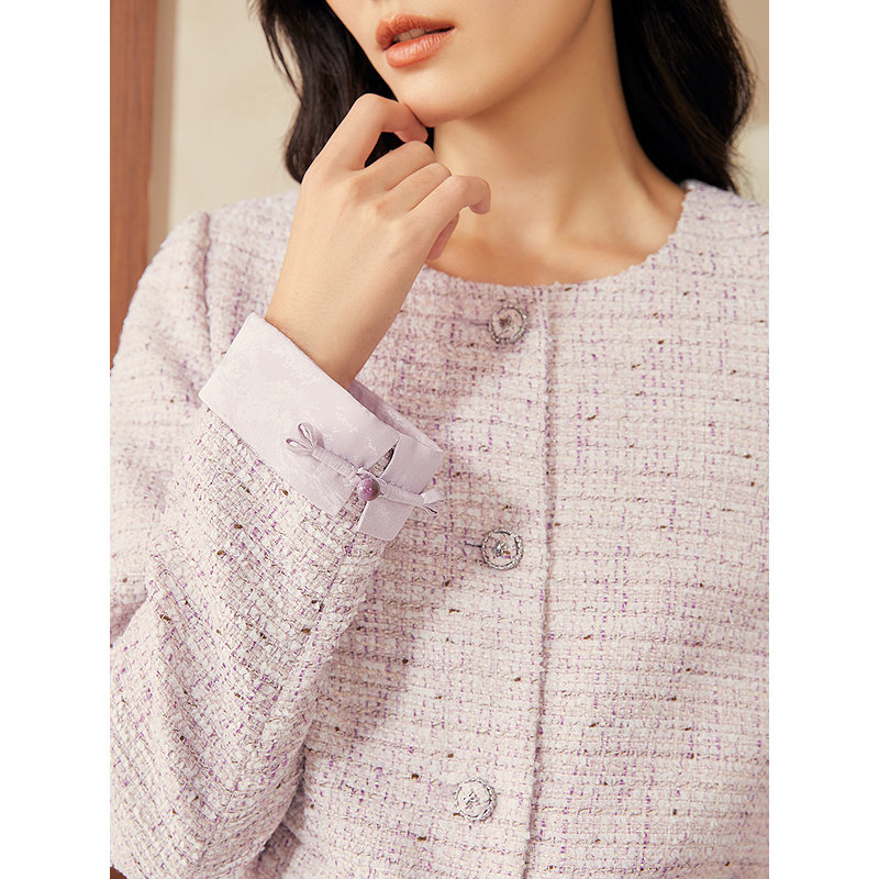 【新中式】YINER音儿2025春季新款箱型亮丝羊毛粗花呢短外套