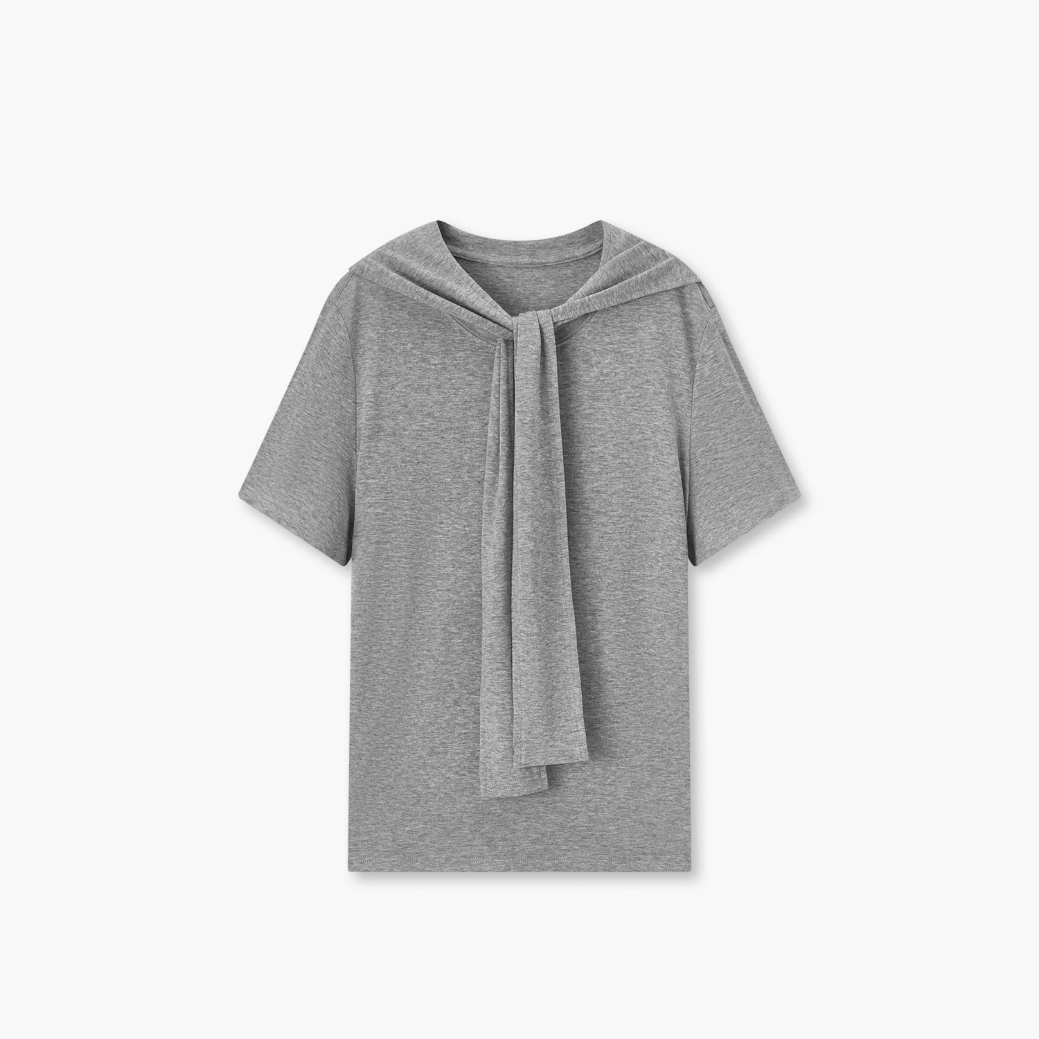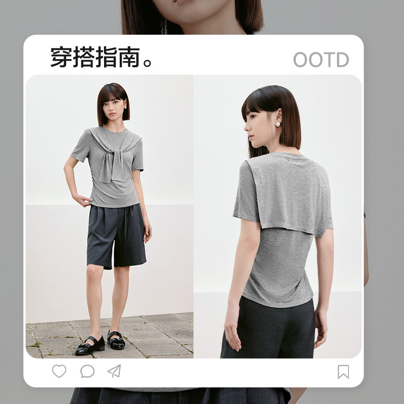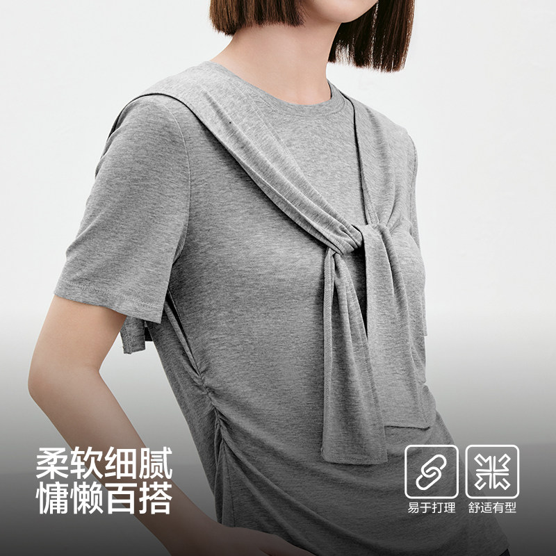 爱居兔时尚披肩短袖T恤女夏季新款软糯舒适休闲短袖针织衫