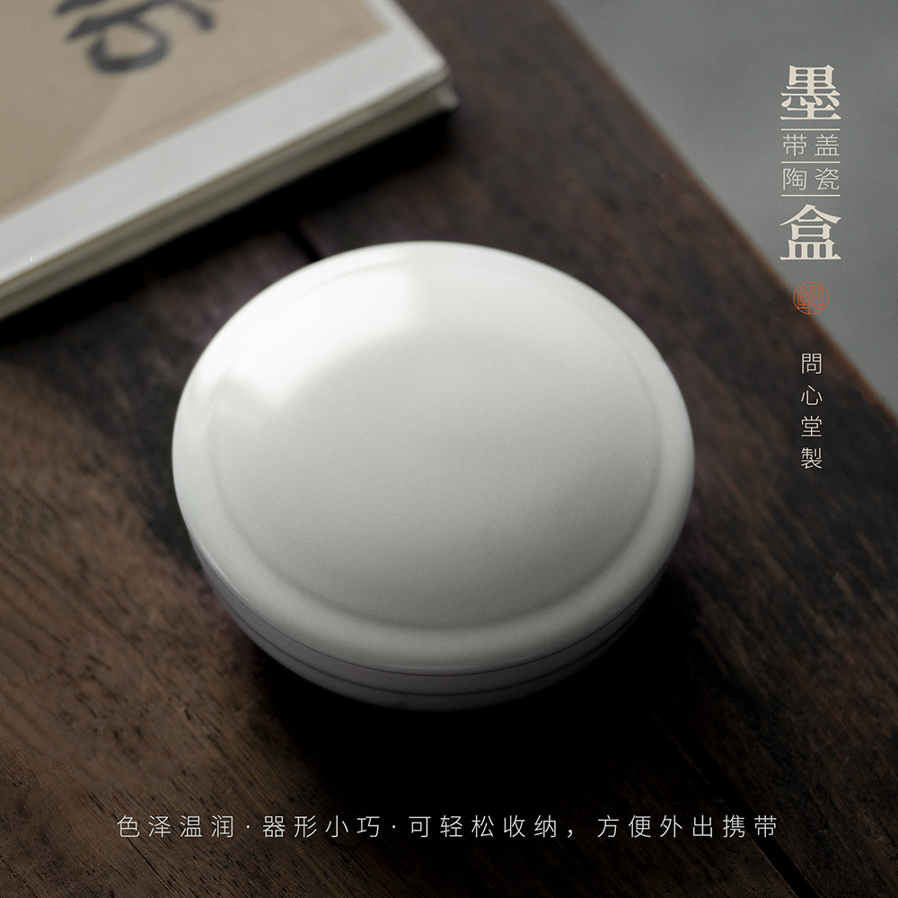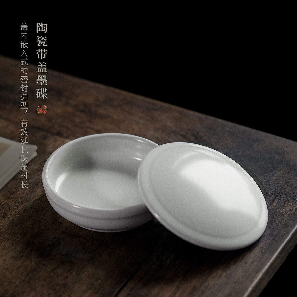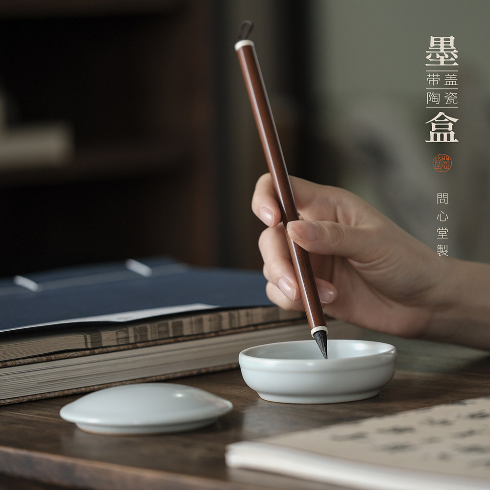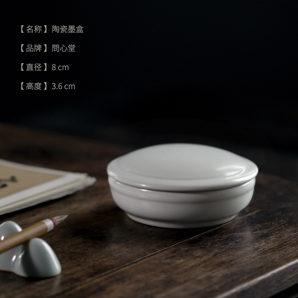 问心堂陶瓷墨盒带盖墨碟墨汁印泥盒龙泉青瓷砚台专用带盖笔洗文房四宝书法用品国画工具搁笔台笔山笔舔存墨盒