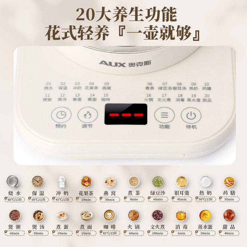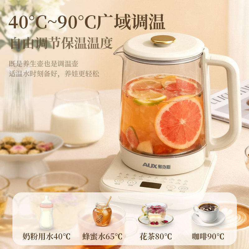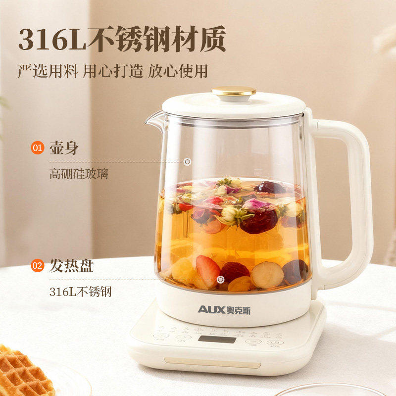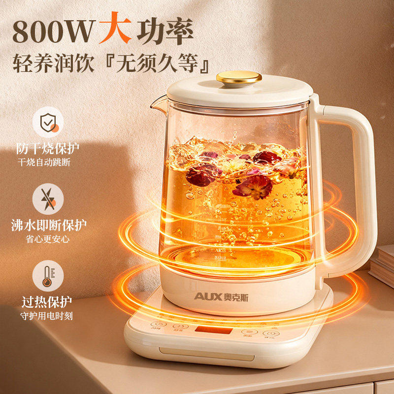 奥克斯家用养生壶加厚玻璃小型办公室多功能一体煮花茶壶爆款实用