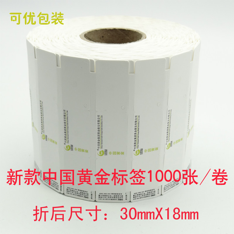 新款中金珠宝标签三折标签无胶三联标签中国黄金珠宝标签1000/卷
