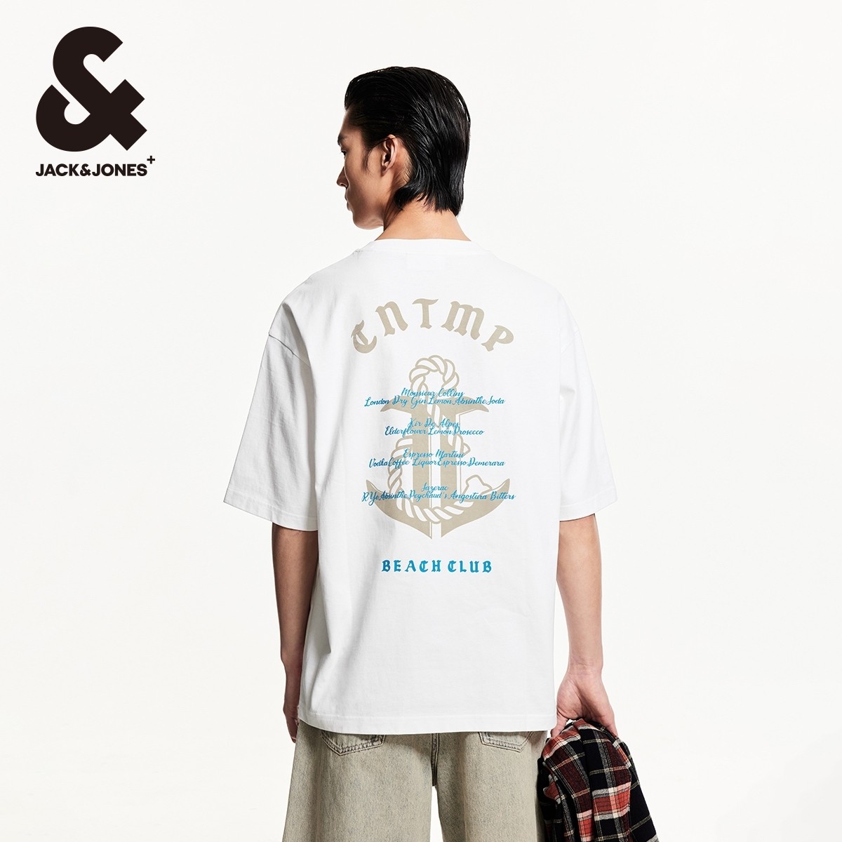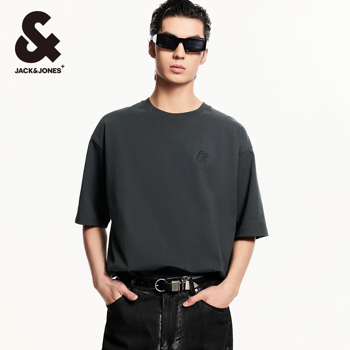 杰克琼斯夏季新款立体刺绣商务休闲日常纯棉男士短袖男款T恤男装