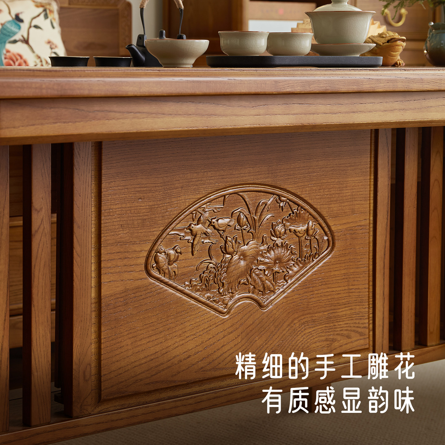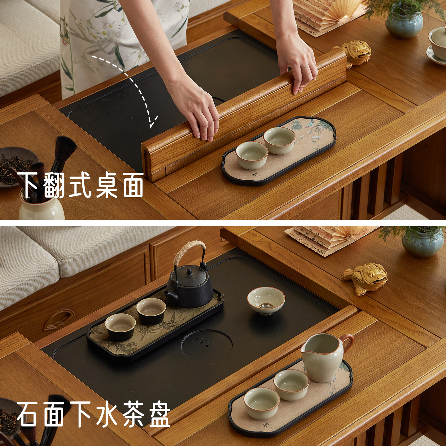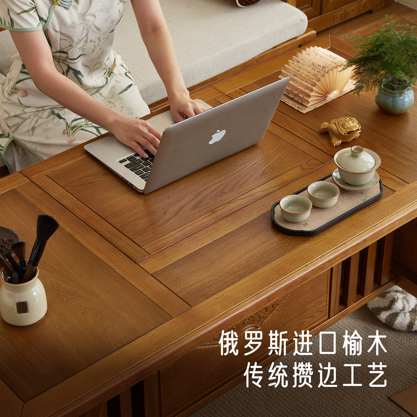 政府补贴新中式实木阳台茶桌家用榆木茶台餐桌两用客厅茶桌椅组合