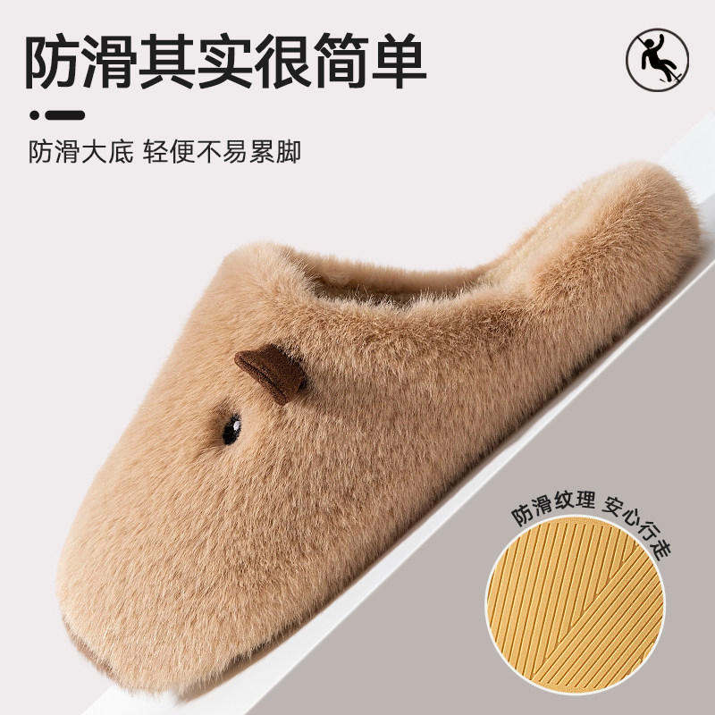 卡皮巴拉棉拖鞋女士2025新款秋冬季毛绒室内保暖居家毛毛棉拖鞋男