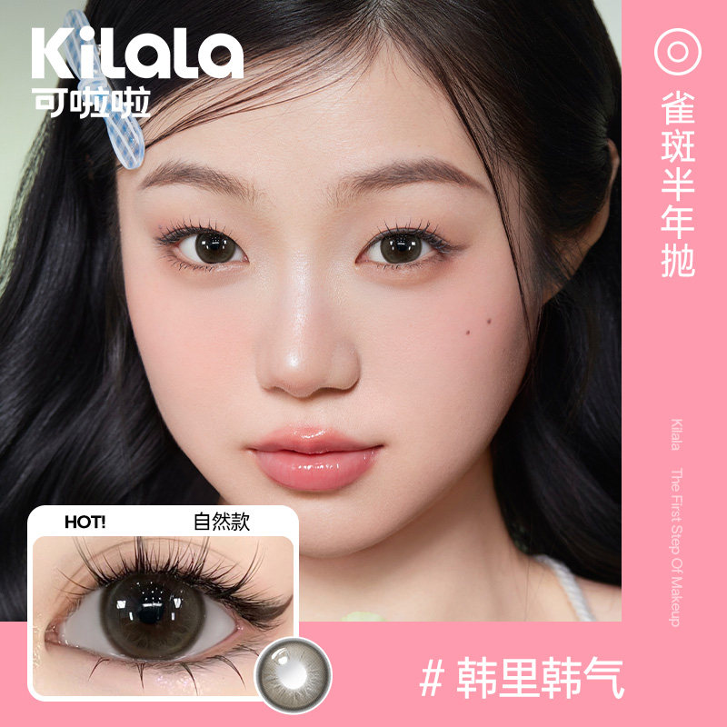 kilala可啦啦隐形眼镜半年抛美瞳女正品官网旗舰店黑灰自然小直径
