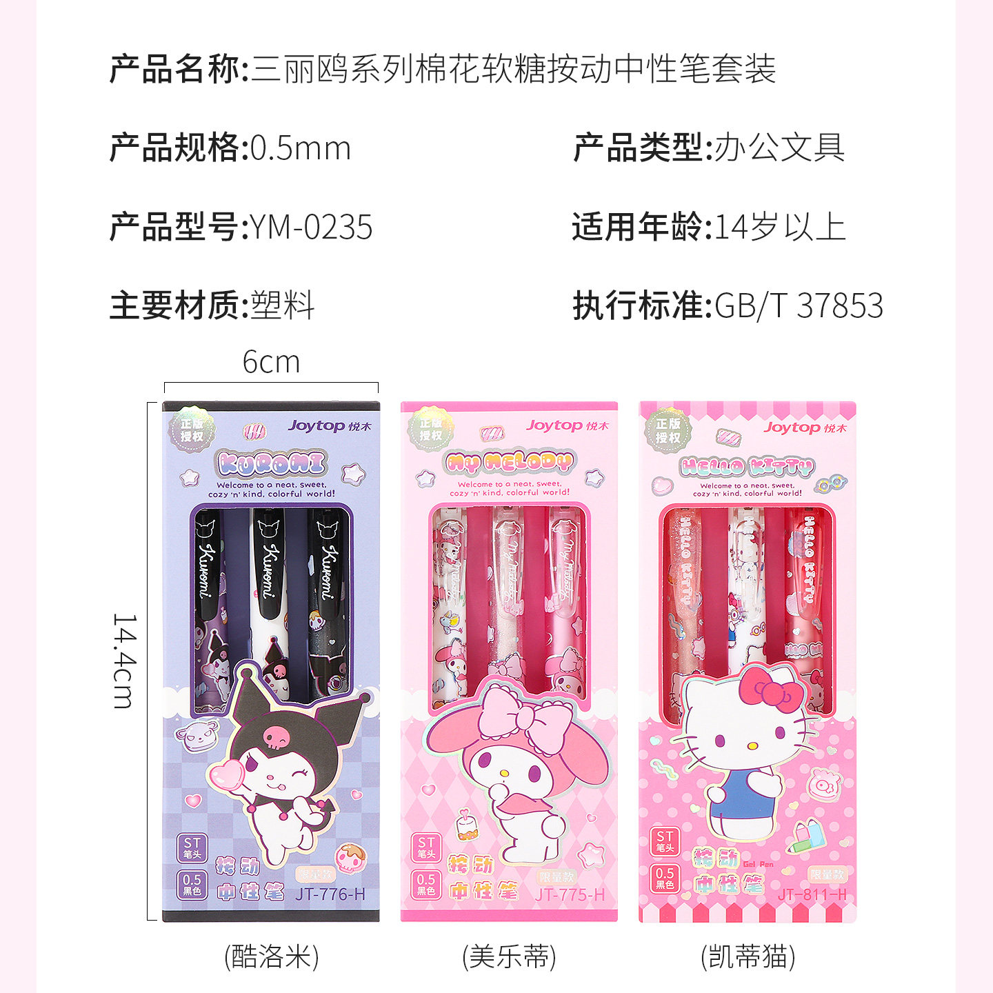miniso名创优品三丽鸥棉花软糖按动中性笔套装凯蒂猫美乐蒂按动笔