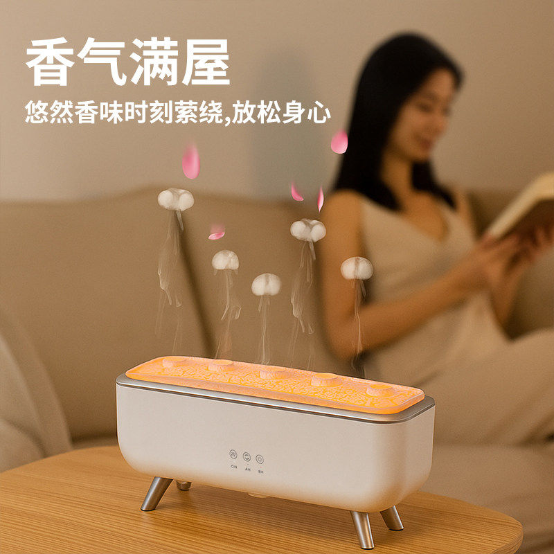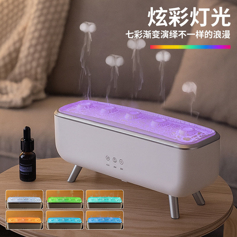 察言拾音水母七彩香薰机自动吐圈圈精油大喷雾氛围感灯居家办公室