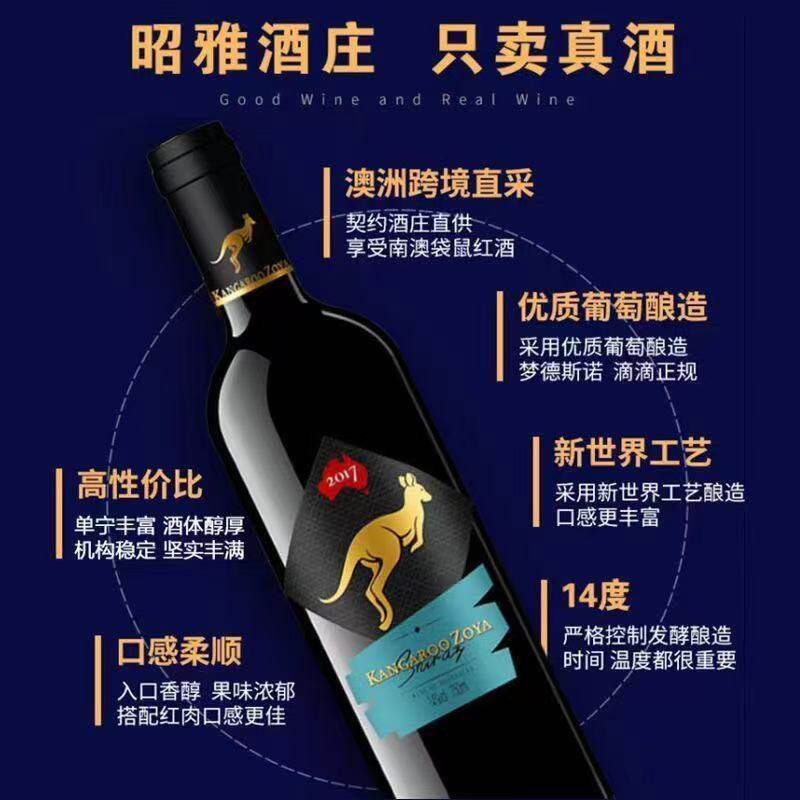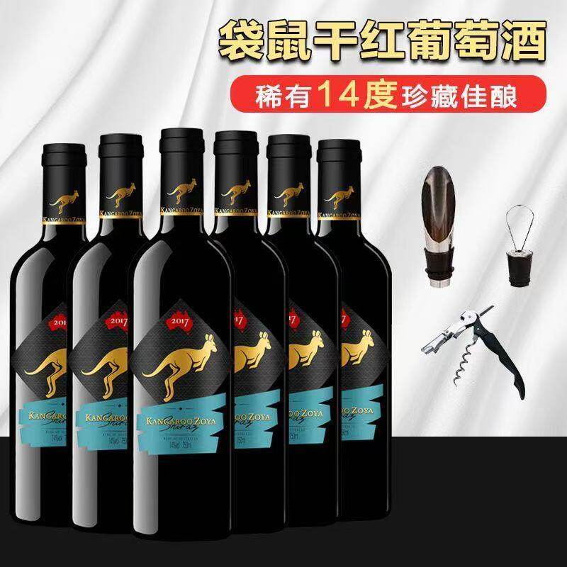澳洲原装原酒进口袋鼠干红葡萄酒14度750ML*6支整箱红酒批发