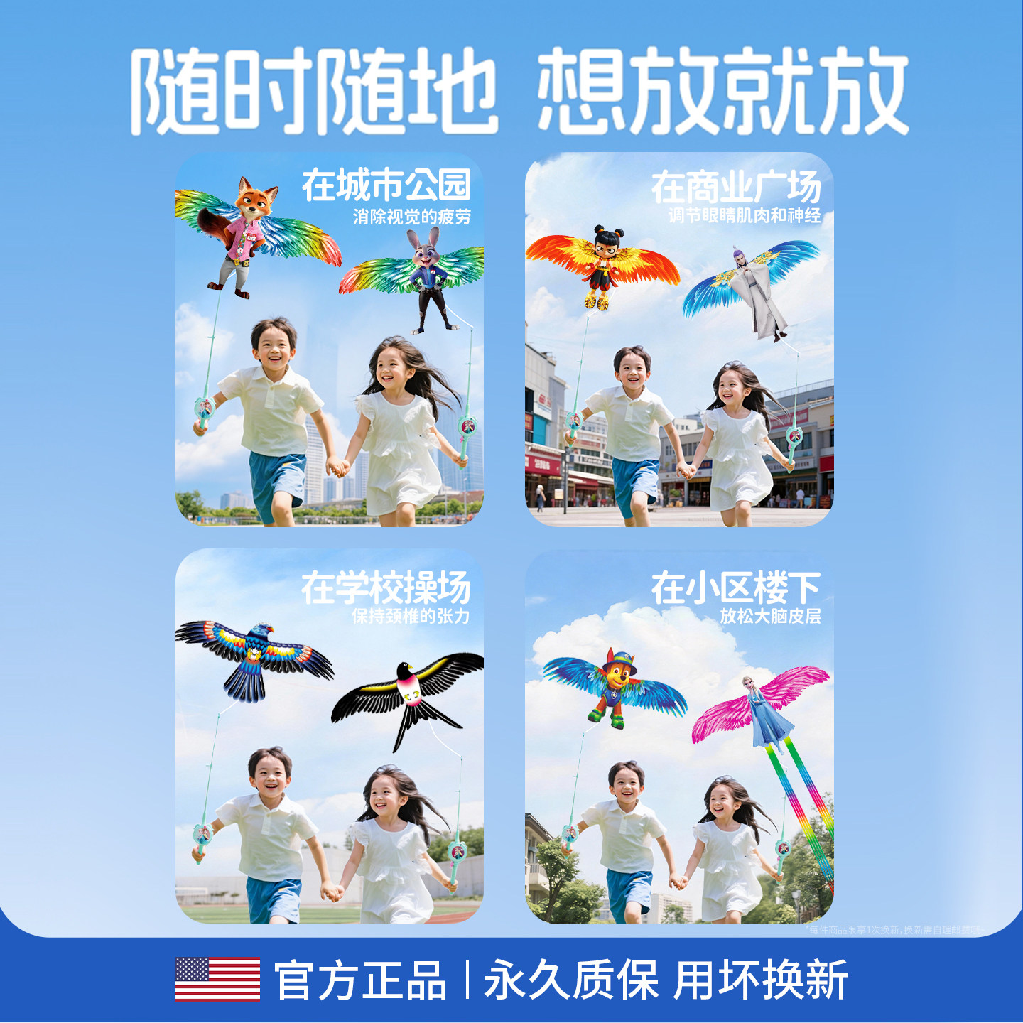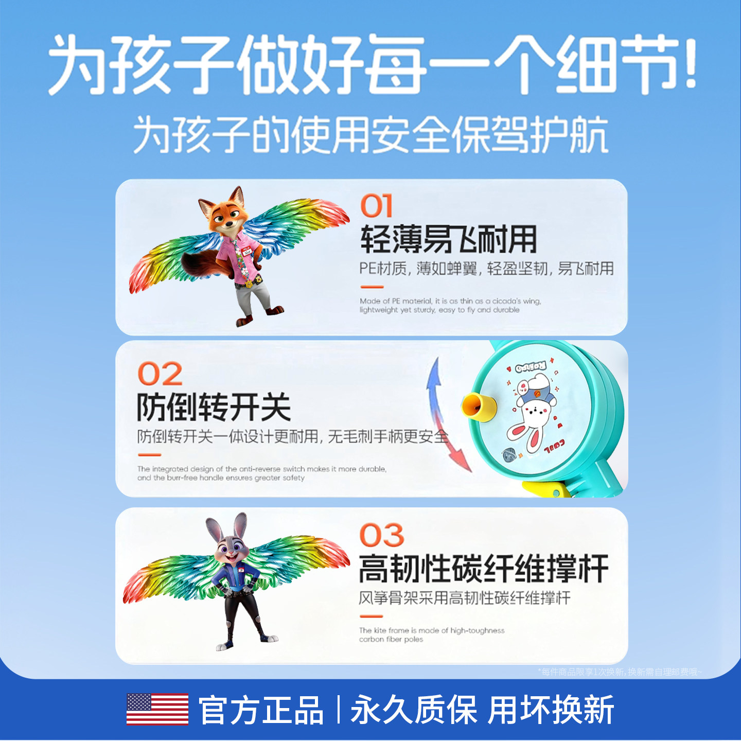 库洛米朱迪儿童动态风筝微风易飞2026新款手持鱼竿小号2岁3岁女孩